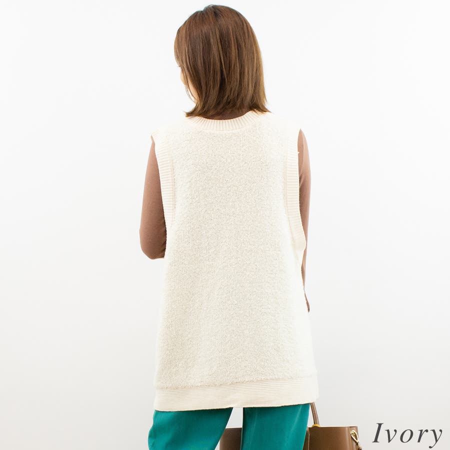 ブークレ素材を使った独特の仕上がりのニットベスト。