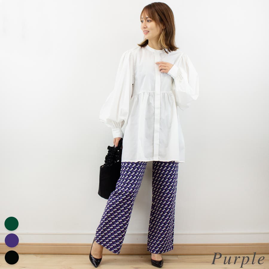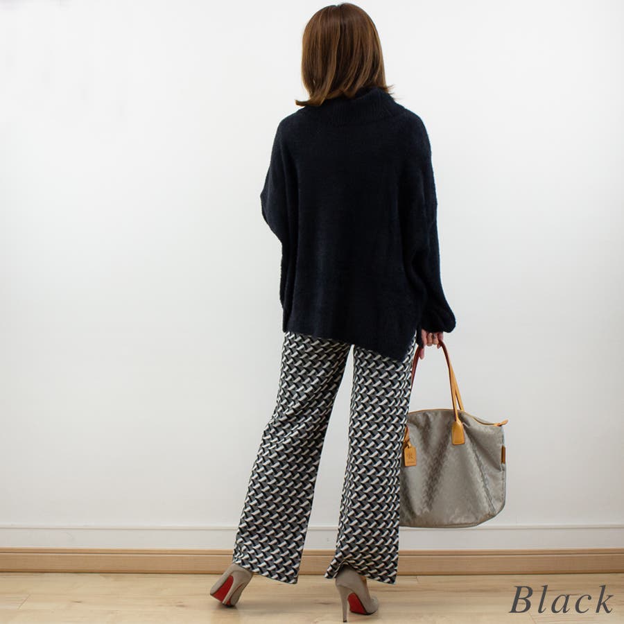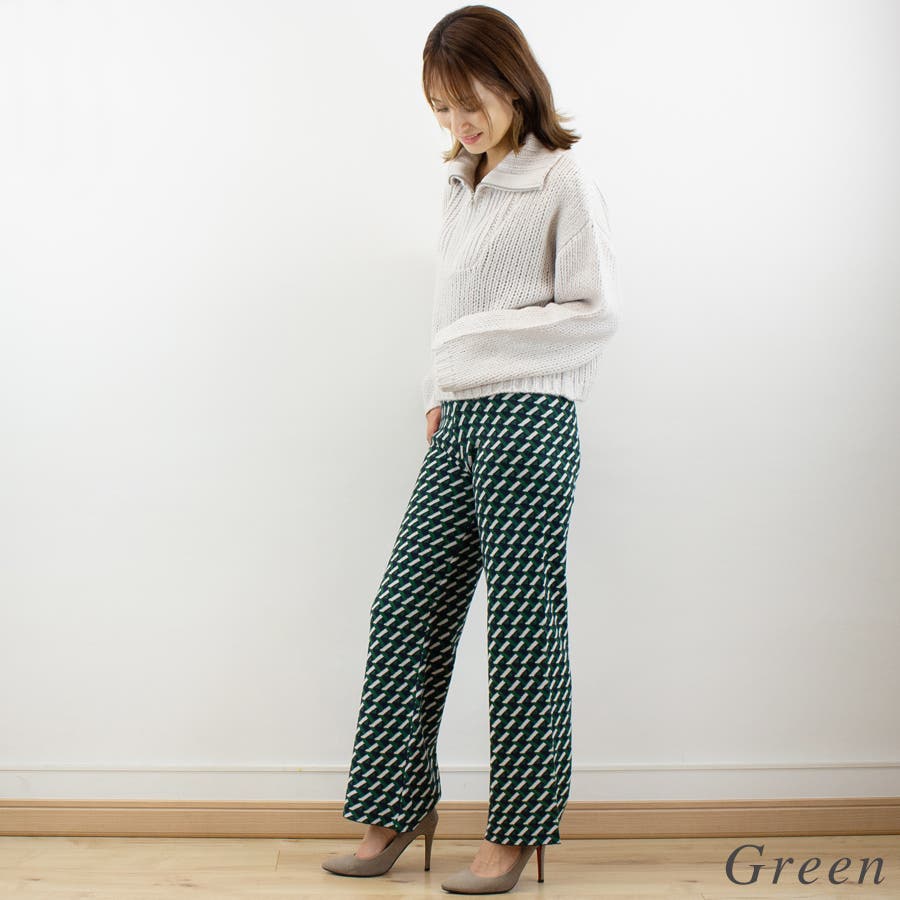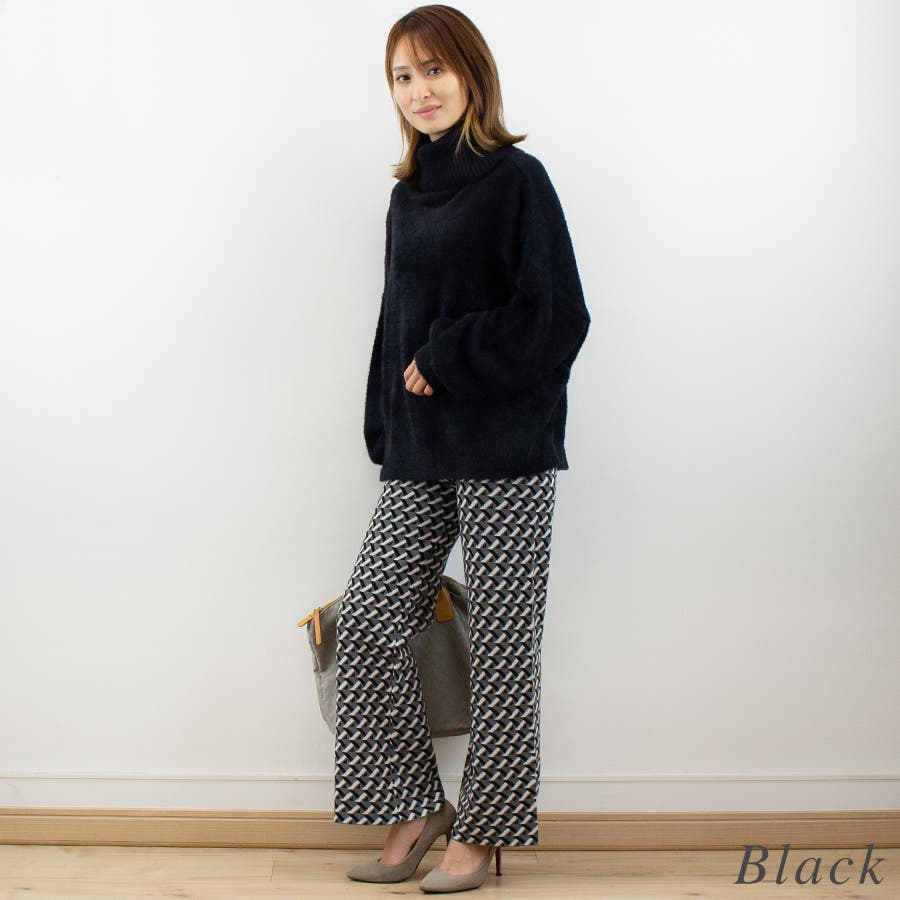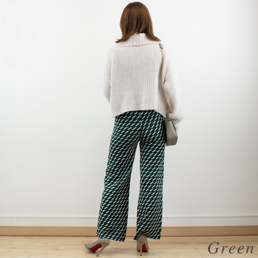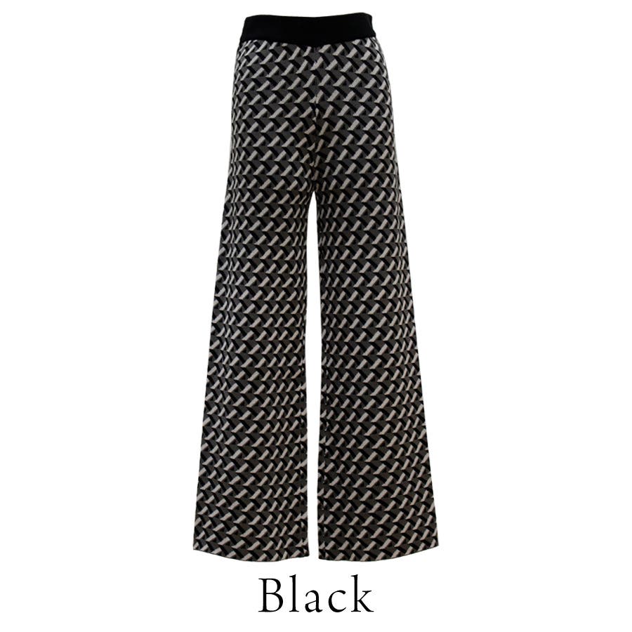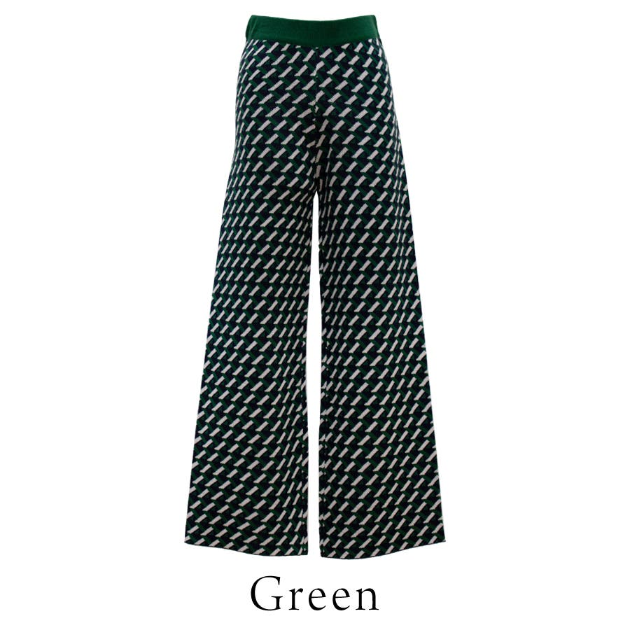 ストレスフリーなニットパンツを幾何学柄で仕上げました。
