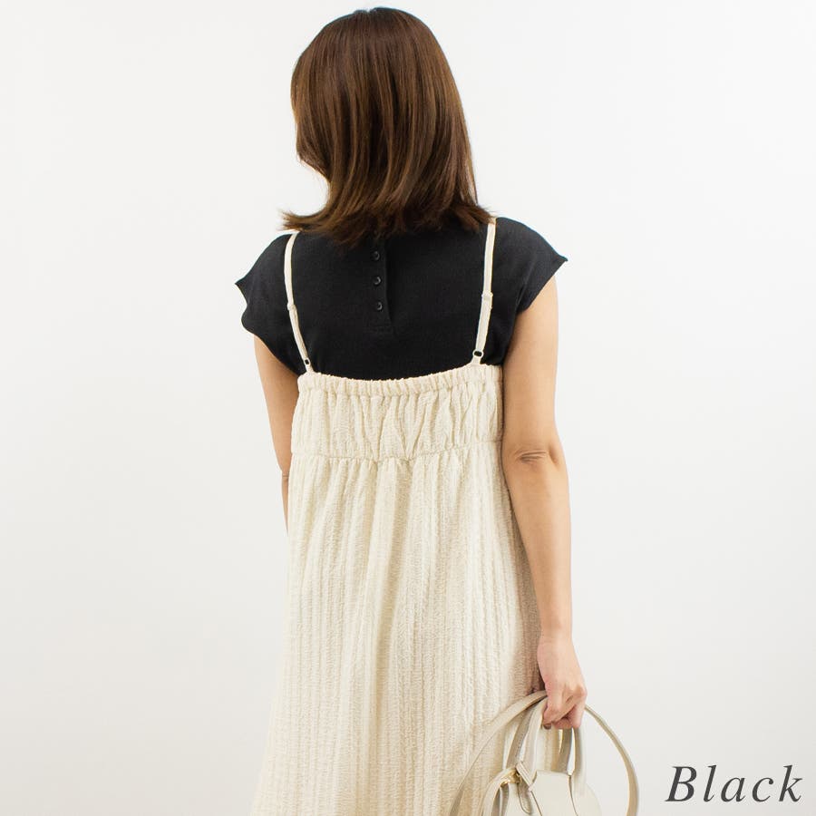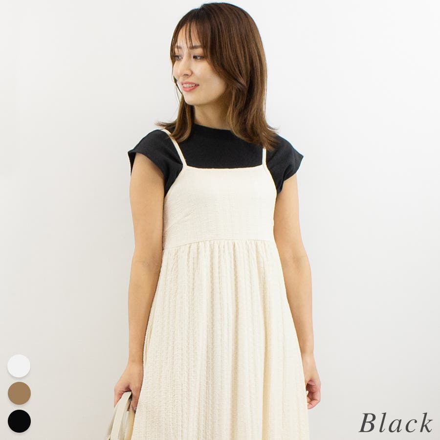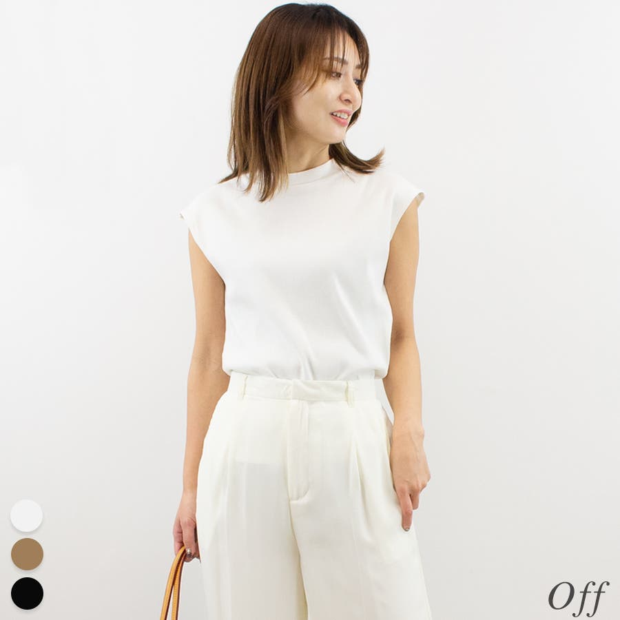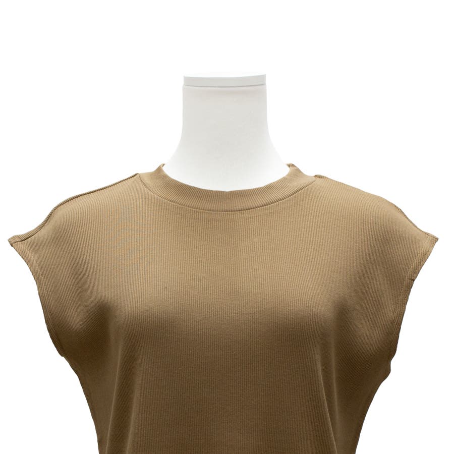 いろんなコーディネートに使えるフレンチスリーブリブカットソー。