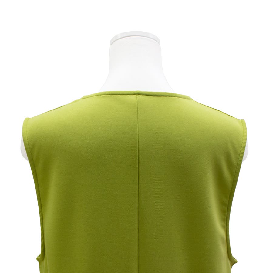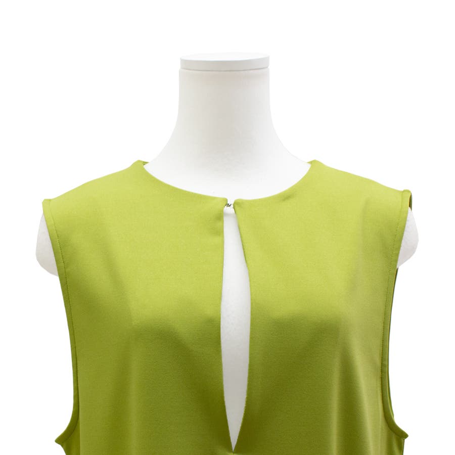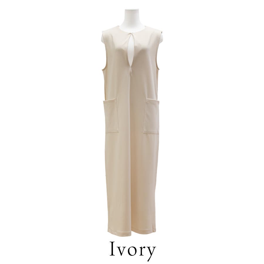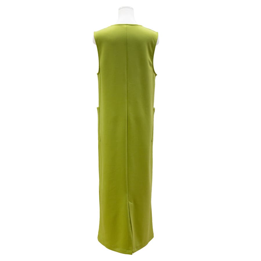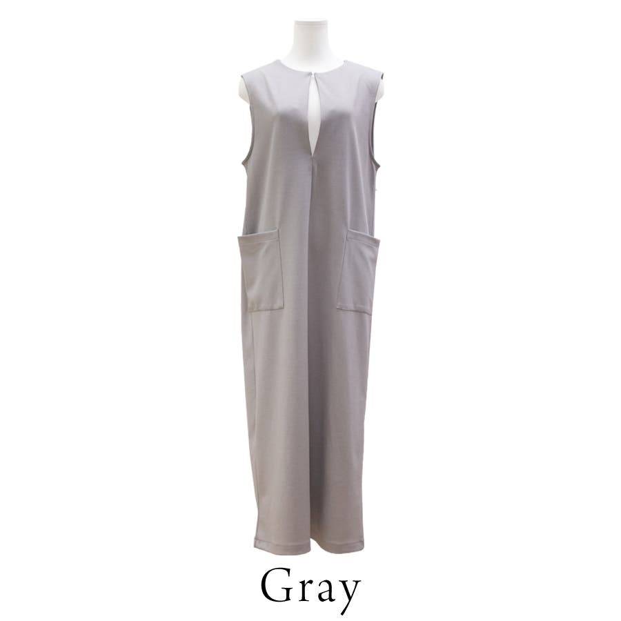 伸縮性のある楽ちん素材で仕上げたジレワンピース。
