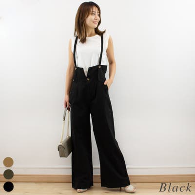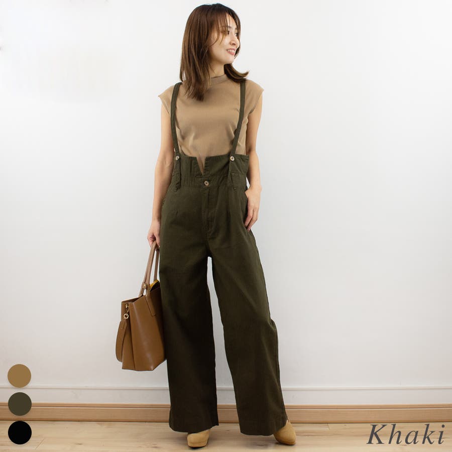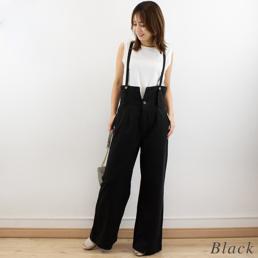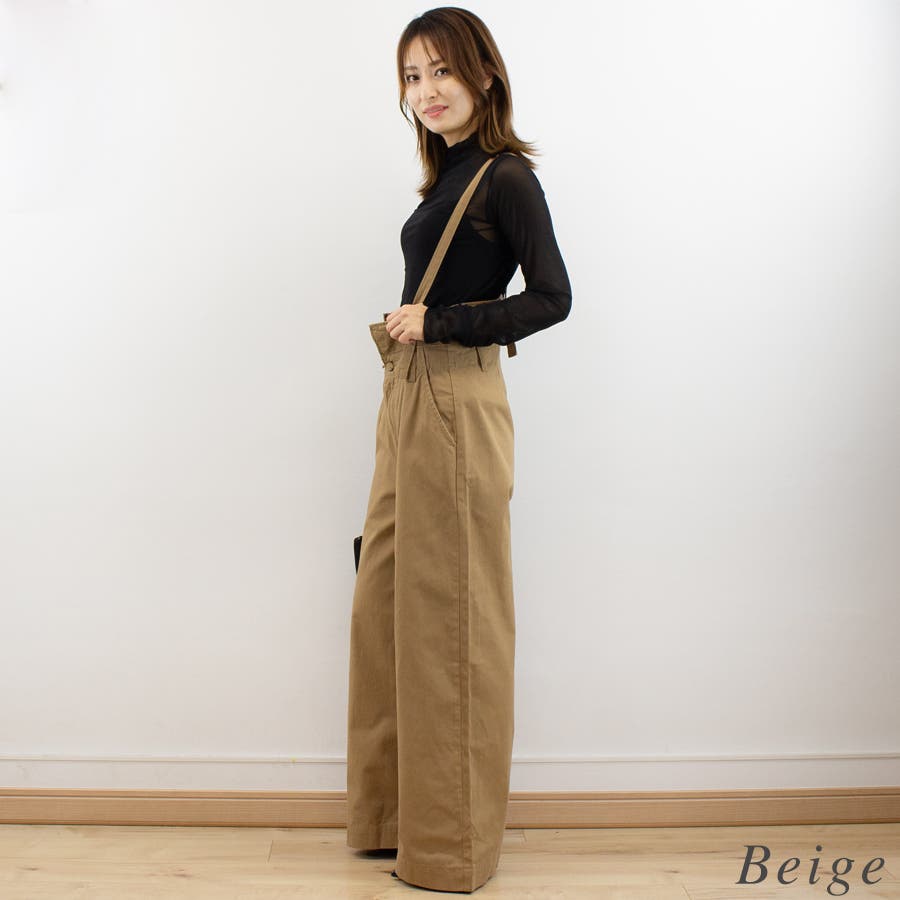 サスペンダー付ハイウエストツイルパンツ