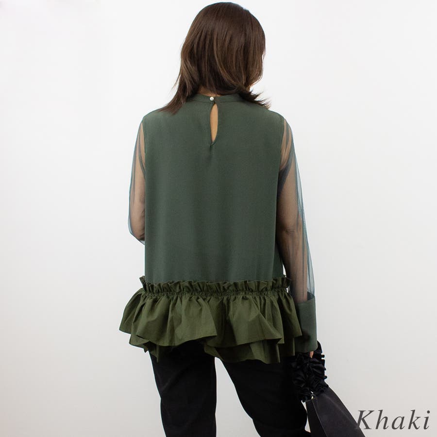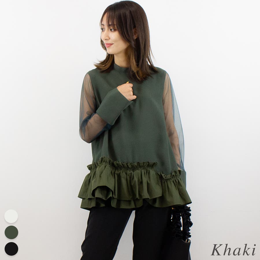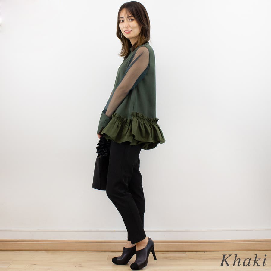 裾のボリュームと袖の透け感がとってもかわいいブラウス。