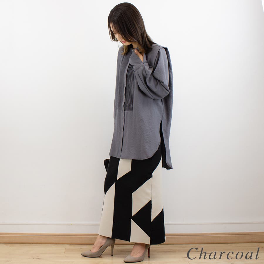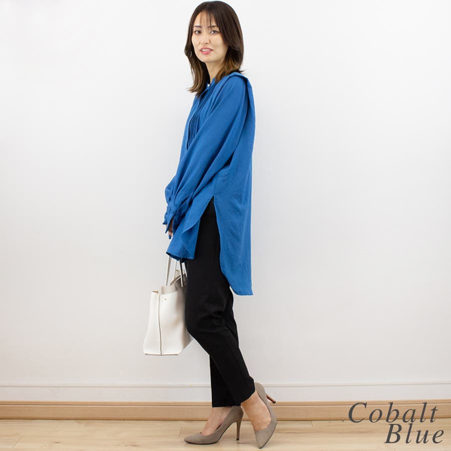 ピンタックデザインで、縦長効果もあり細身見えも◎