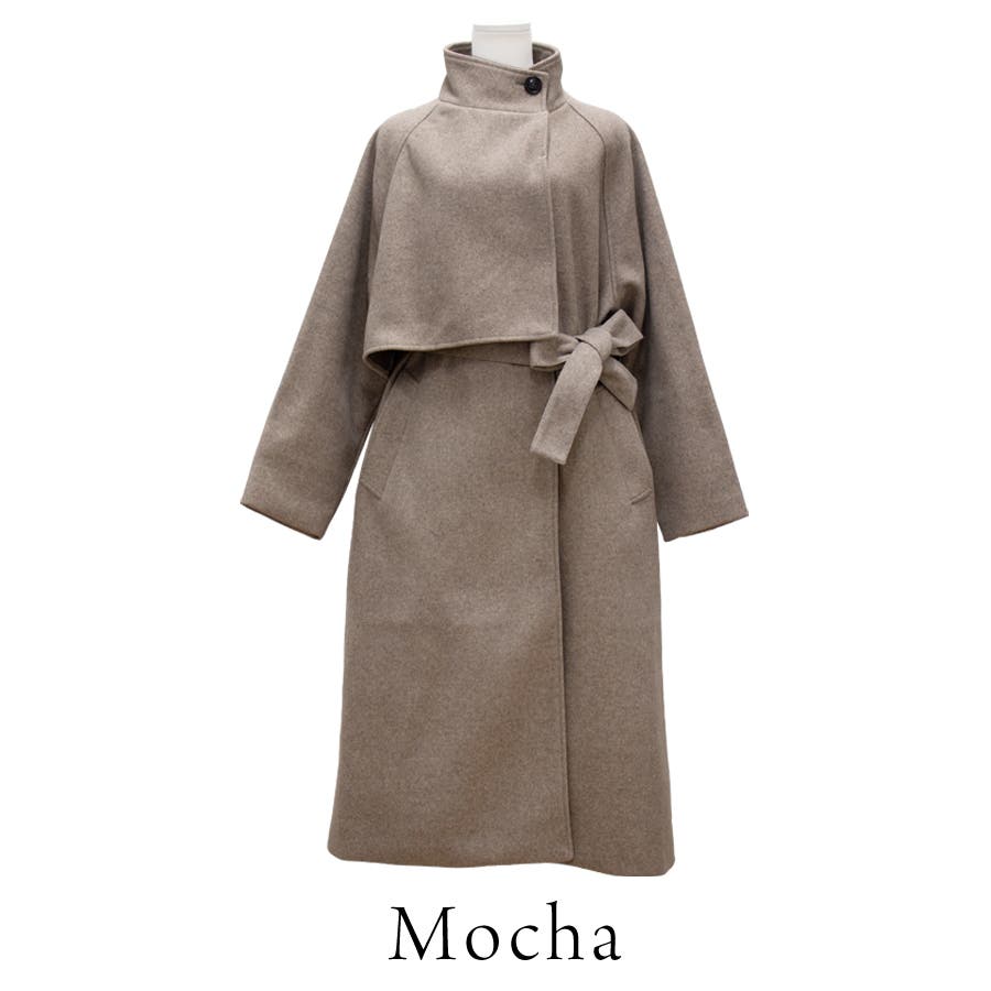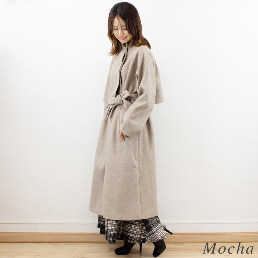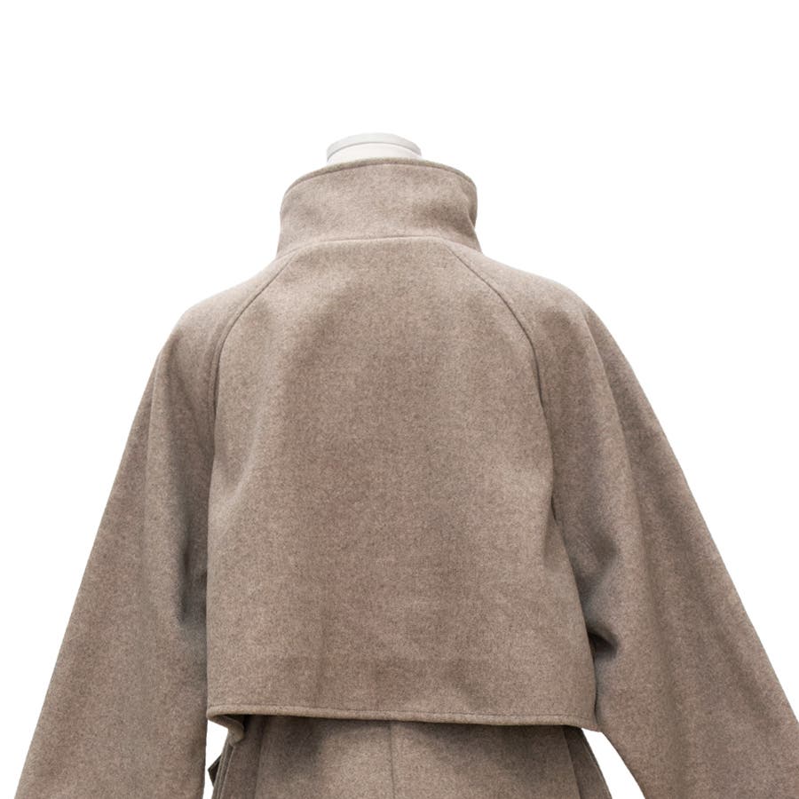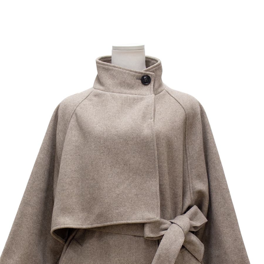 フェイクウールスタンドカラーケープコート