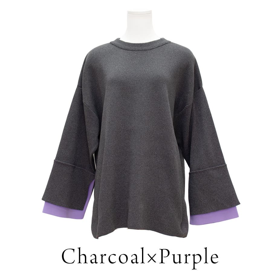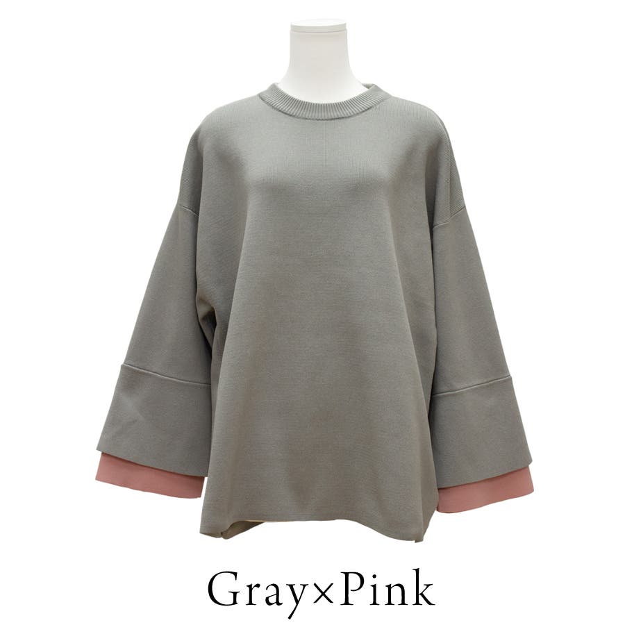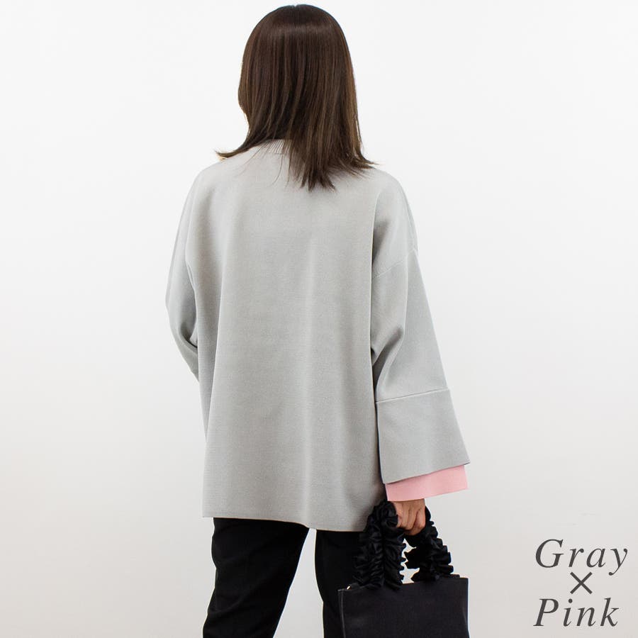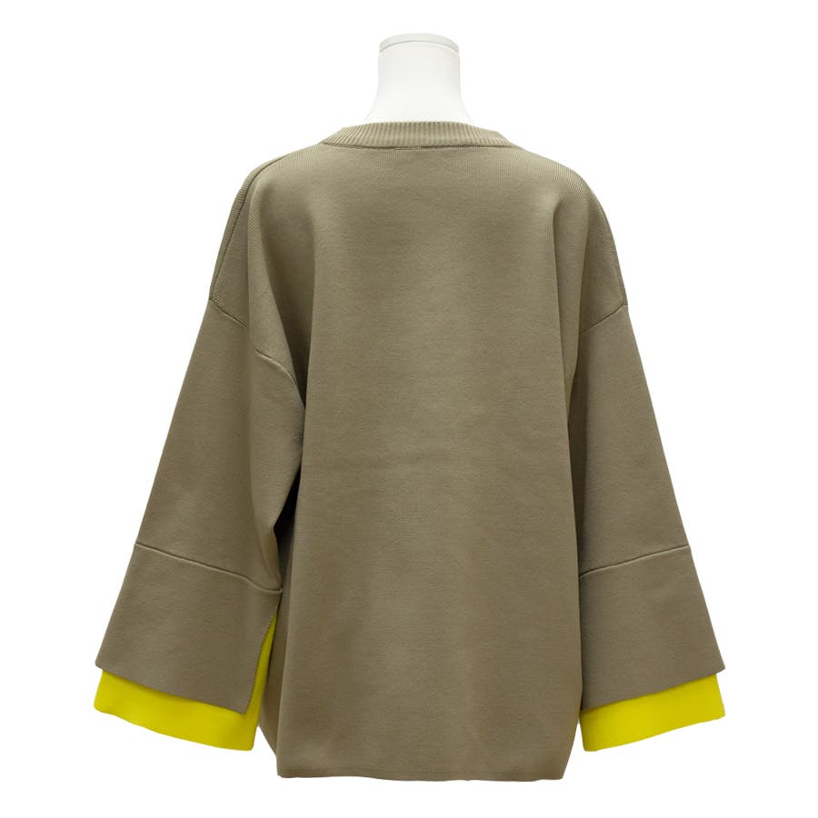 ジャガード編みフレアスリーブ重ね着風プルオーバー