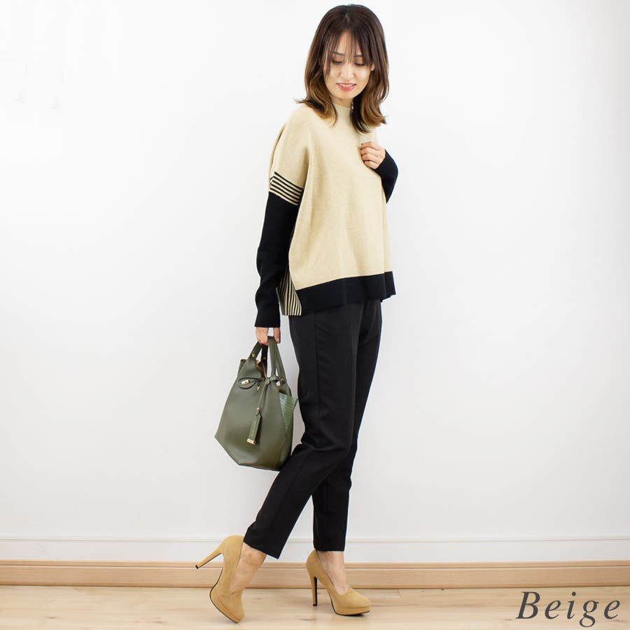通学/通勤/上品/綺麗目/リブ/配色/ニット/おでかけ/