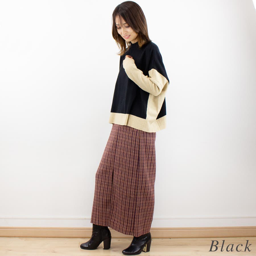 配色とスクエアデザインがかわいいニット