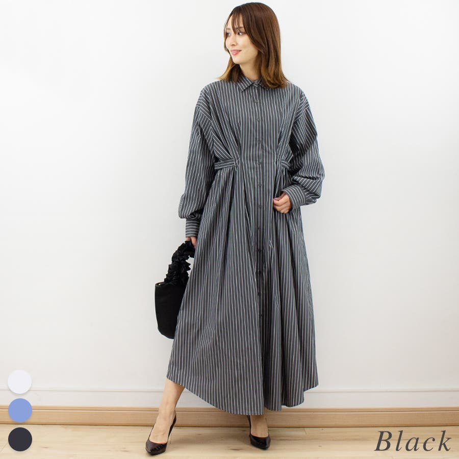 ウエストに入ったタックでスタイルアップなワンピース♪