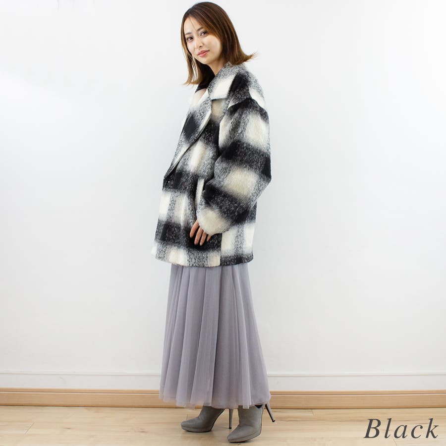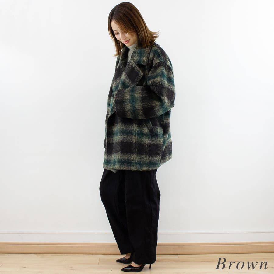 ジャケットぽく着られるシャギーのミドル丈コート。