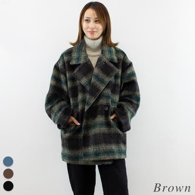 シャギーチェックコクーンミドルコート