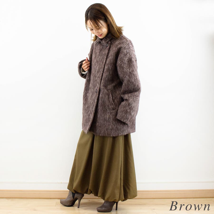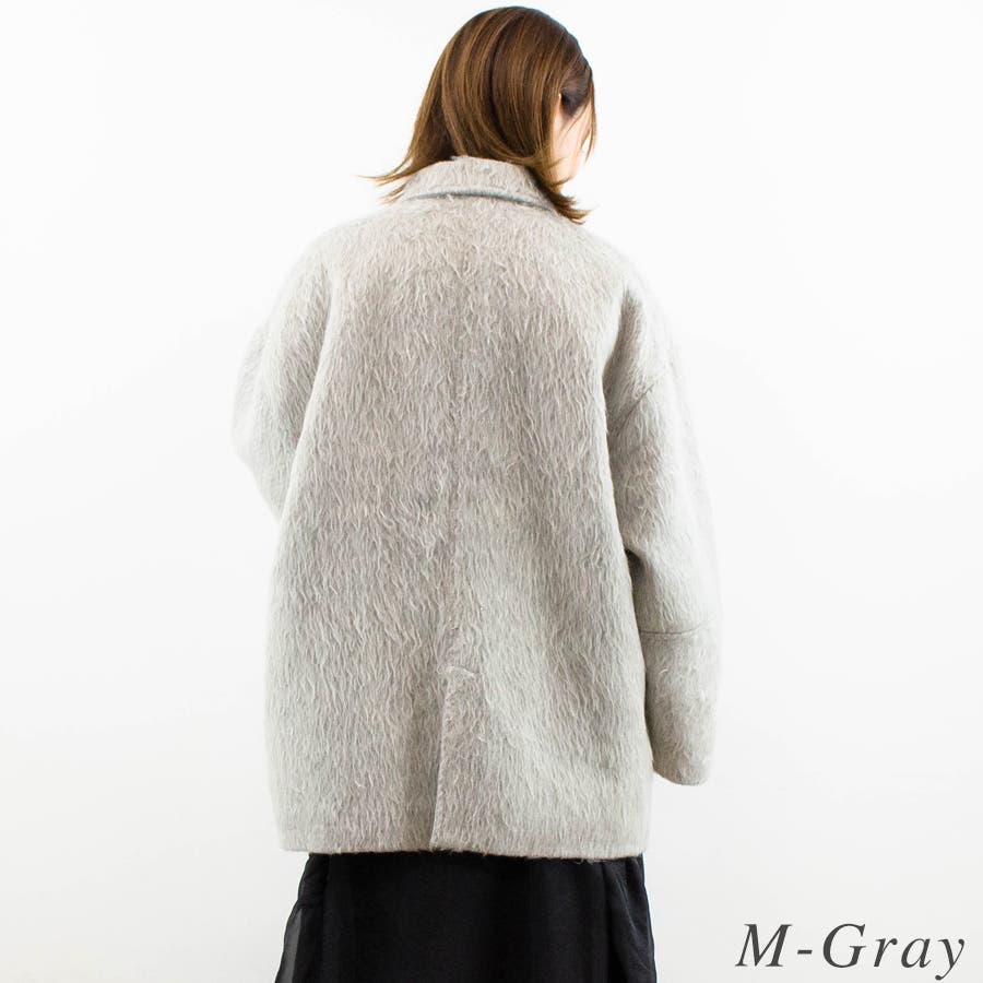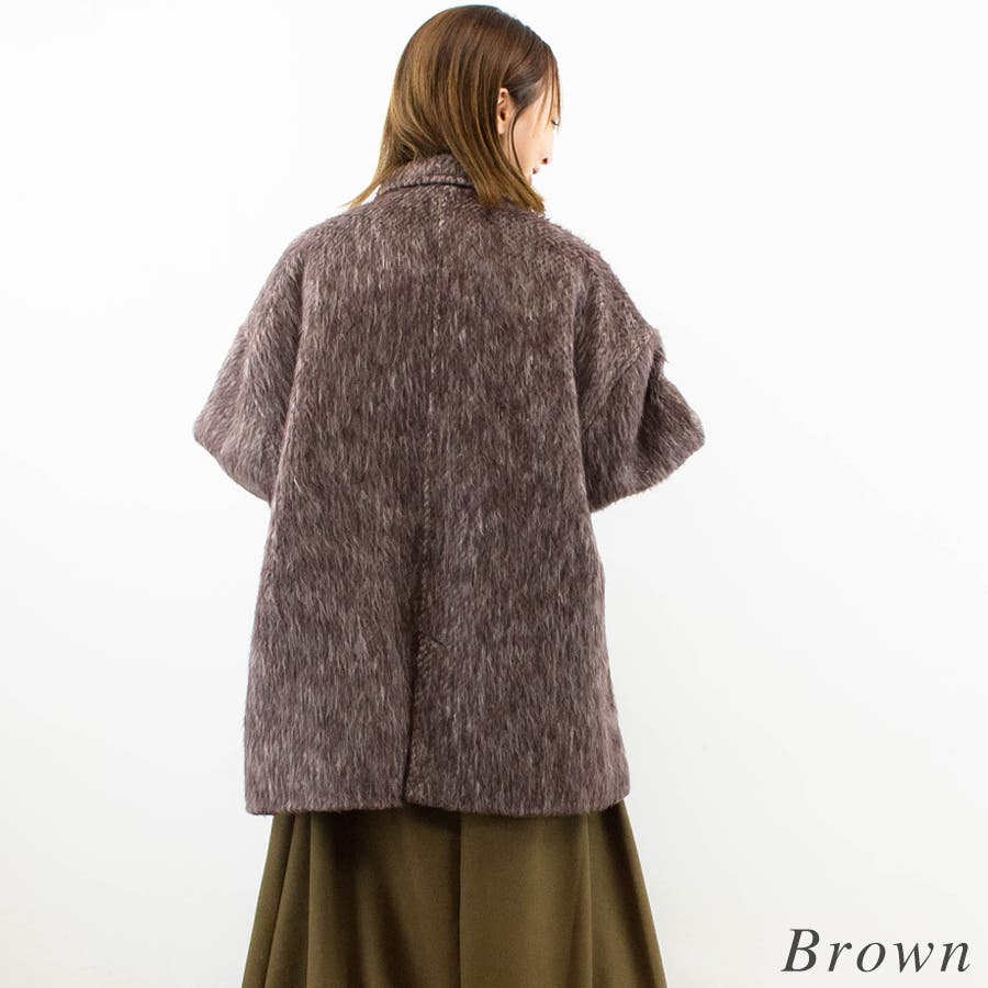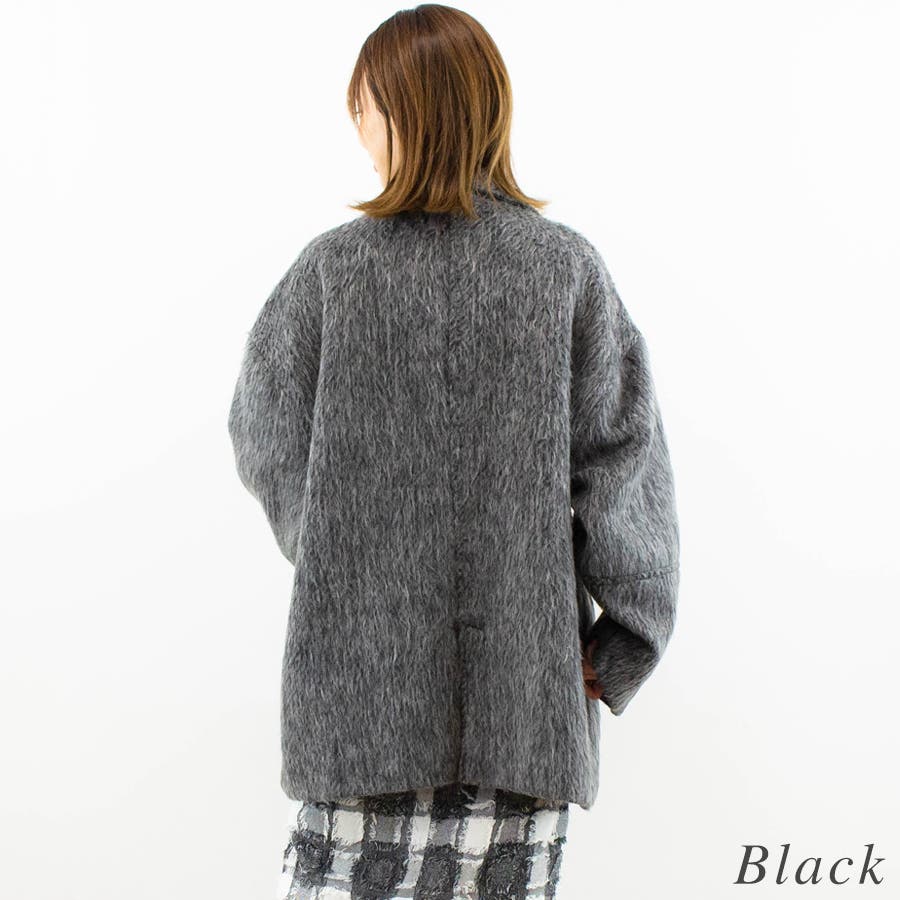 ジャケットぽく着られるシャギーのミドル丈コート。