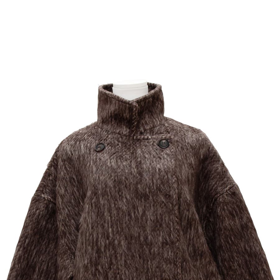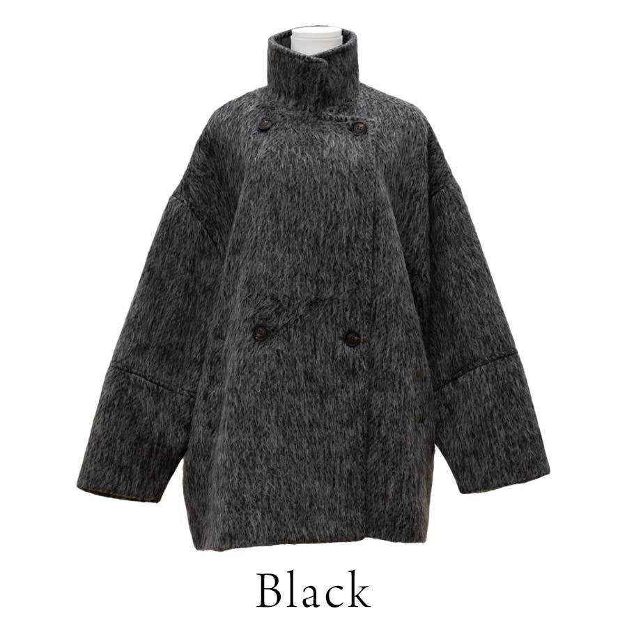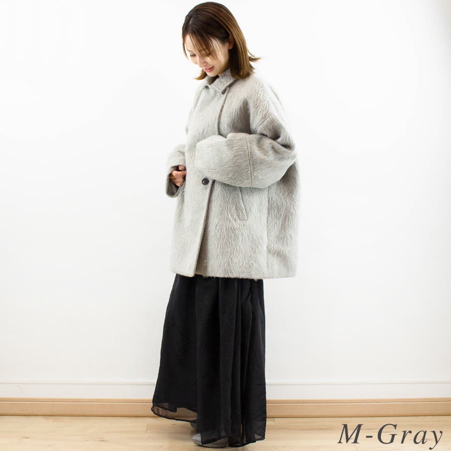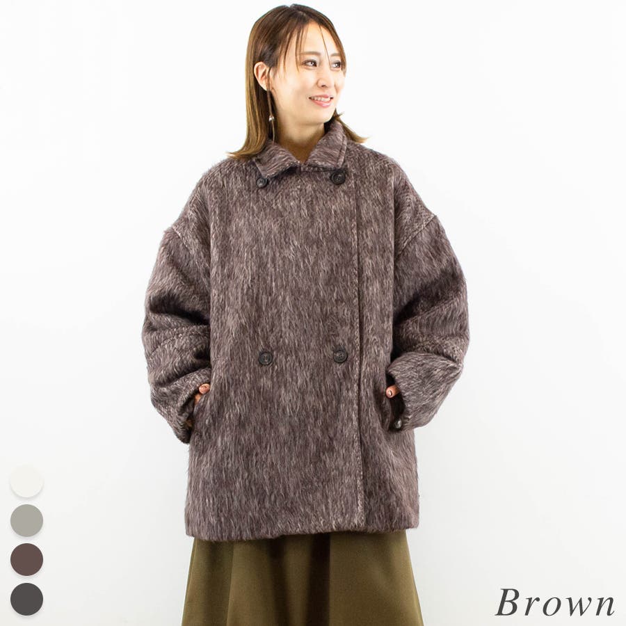 ジャケットぽく着られるシャギーのミドル丈コート。