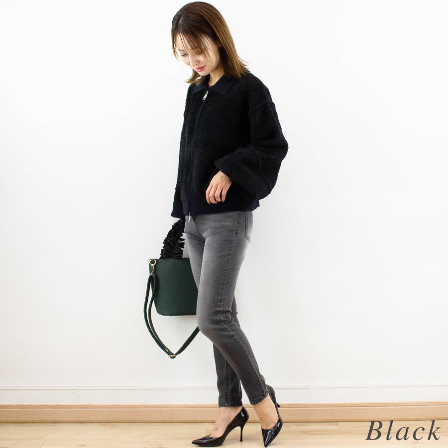 ブークレ×アルパカタッチ襟付きニットブルゾン