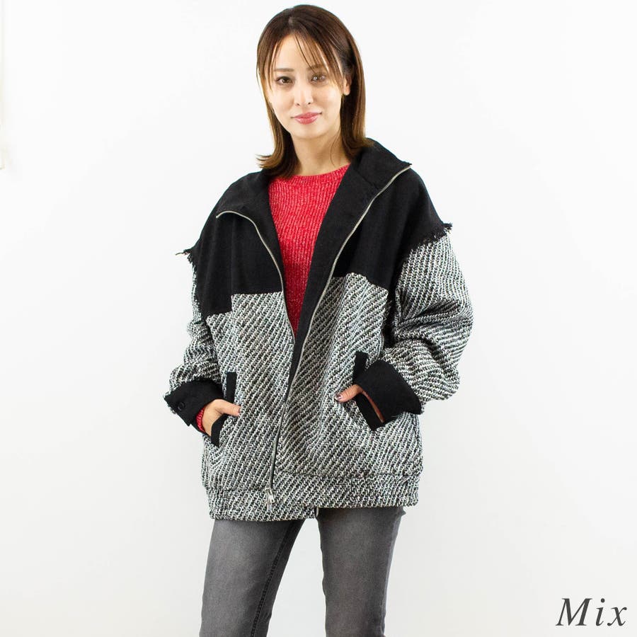 通学/通勤/上品/綺麗目/ジッパー/ブルゾン/ツイード/