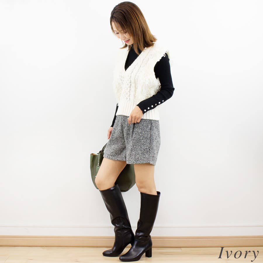 短め丈でレイヤードスタイルにぴったりなニットベスト。