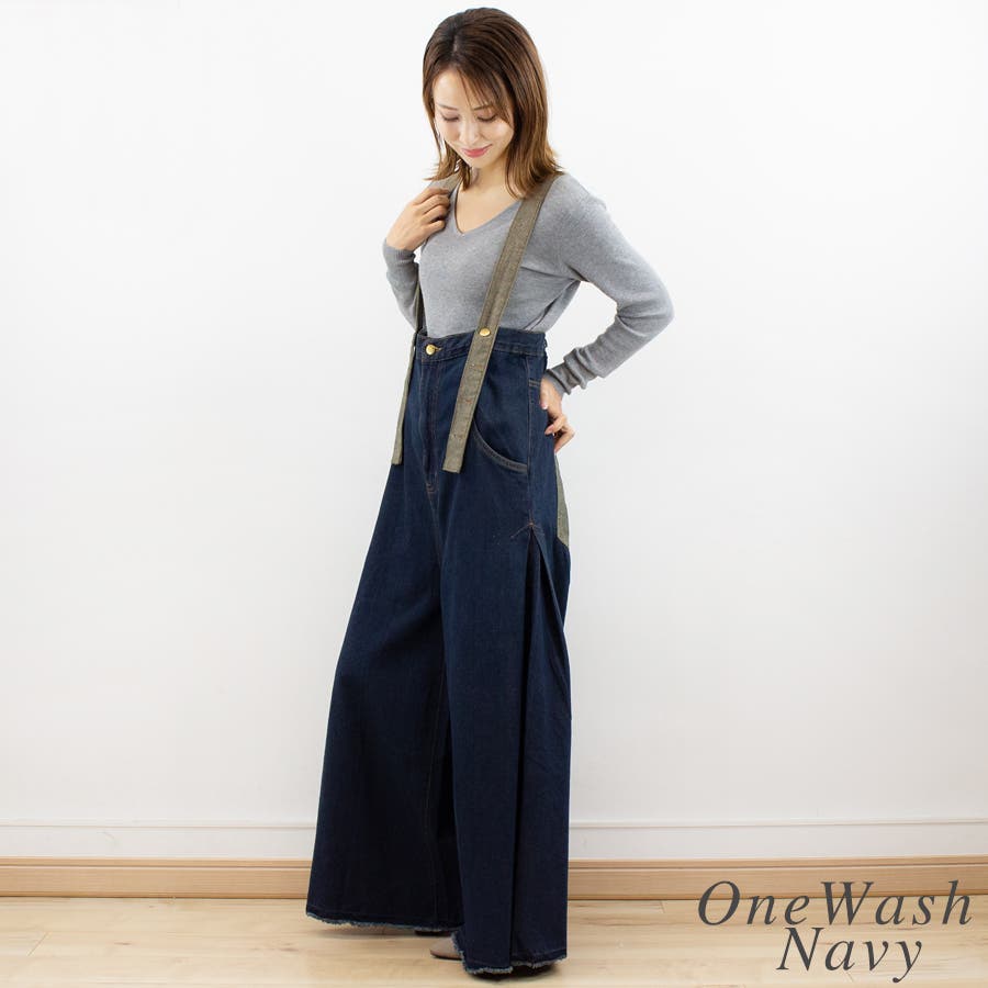 通学/通勤/ワイドパンツ/パンツ/ハイウエスト/サス付き/