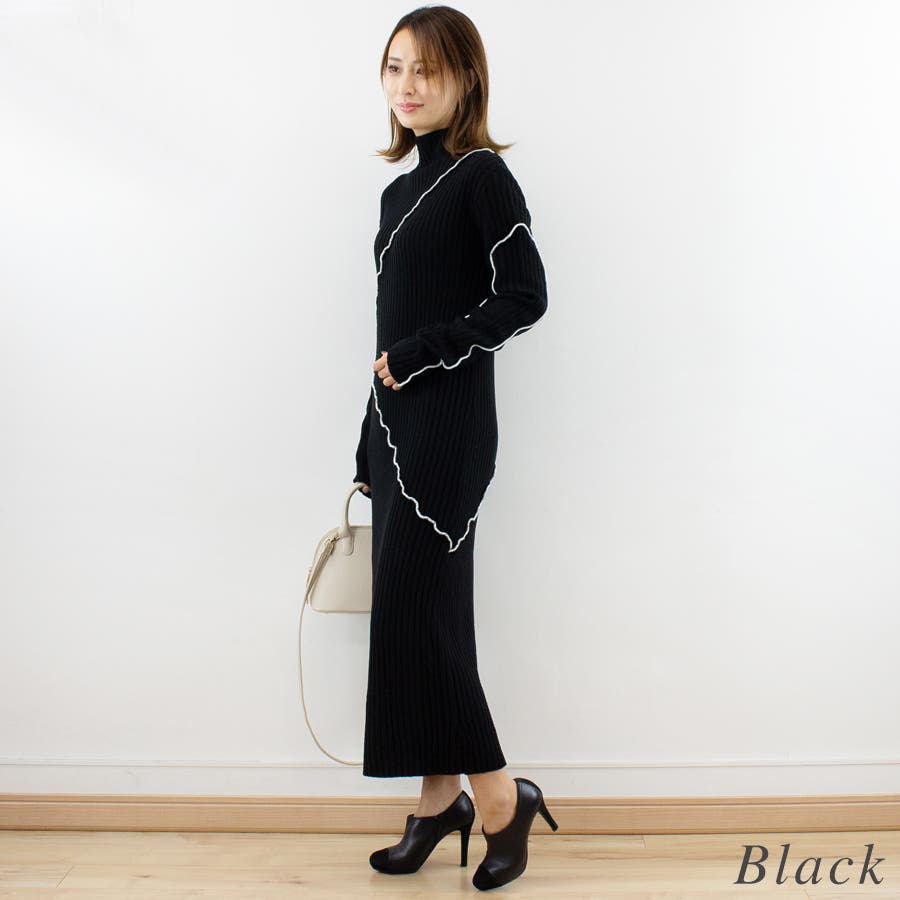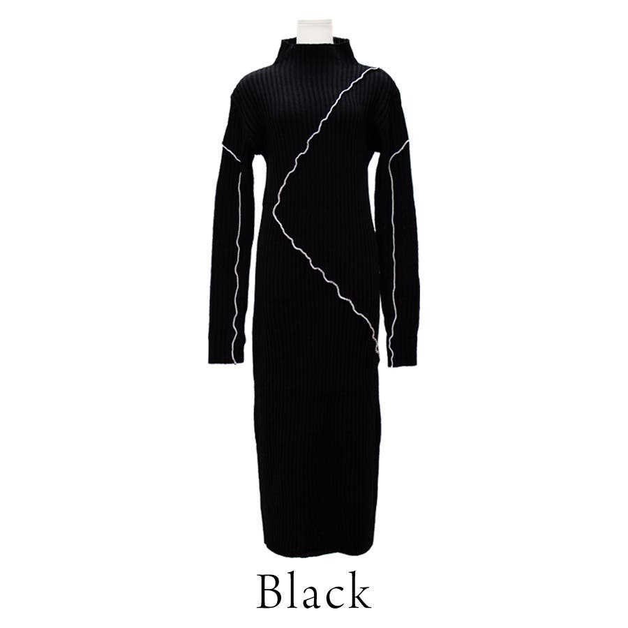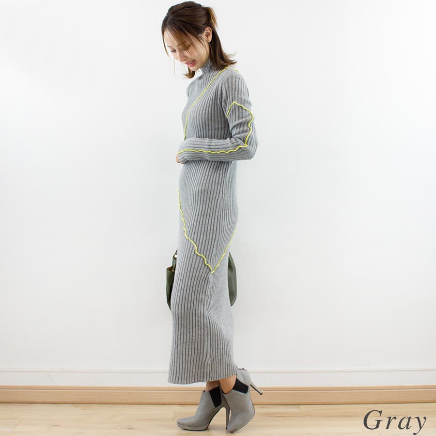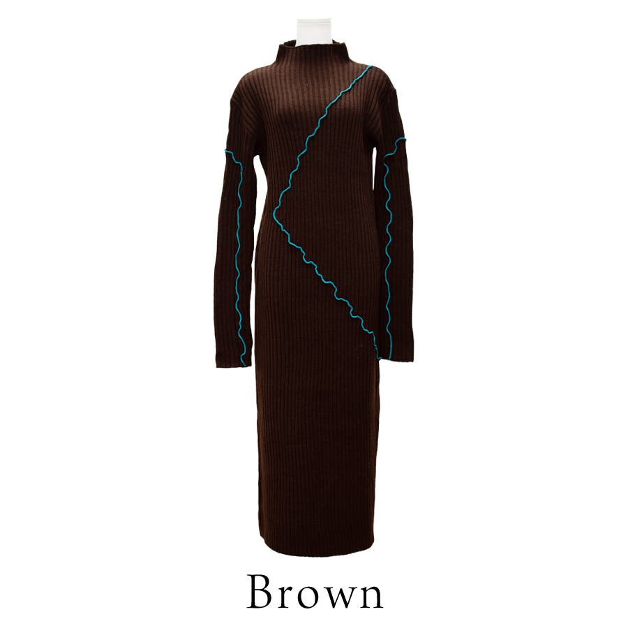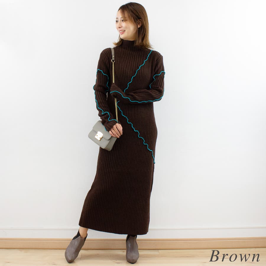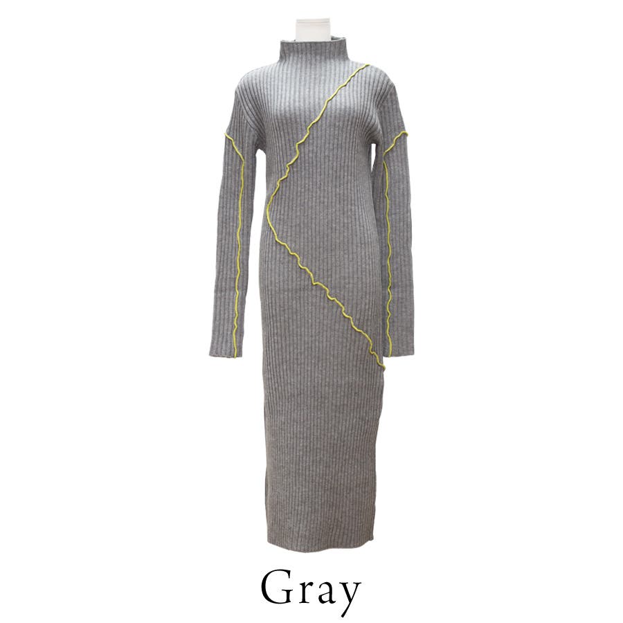 メロー配色ニットワンピース