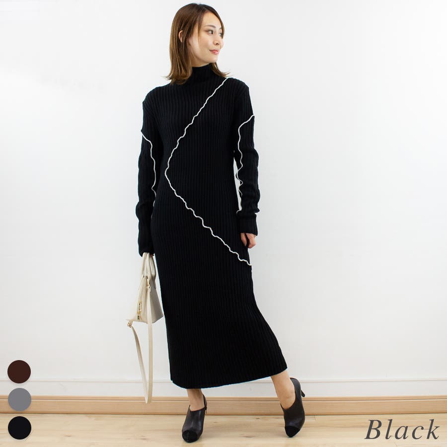 配色メローデザインがポイントのニットワンピース。
