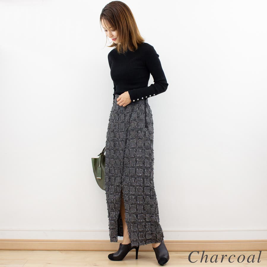 通学/通勤/チェック/タイト/フリンジ/スカート/スリット/