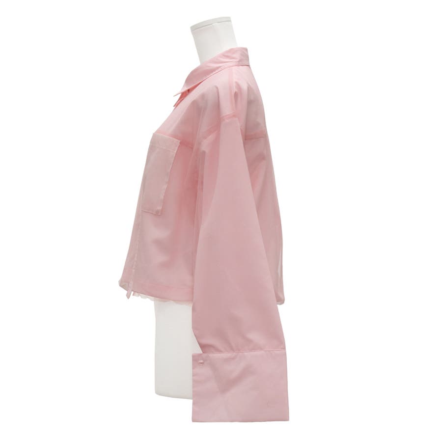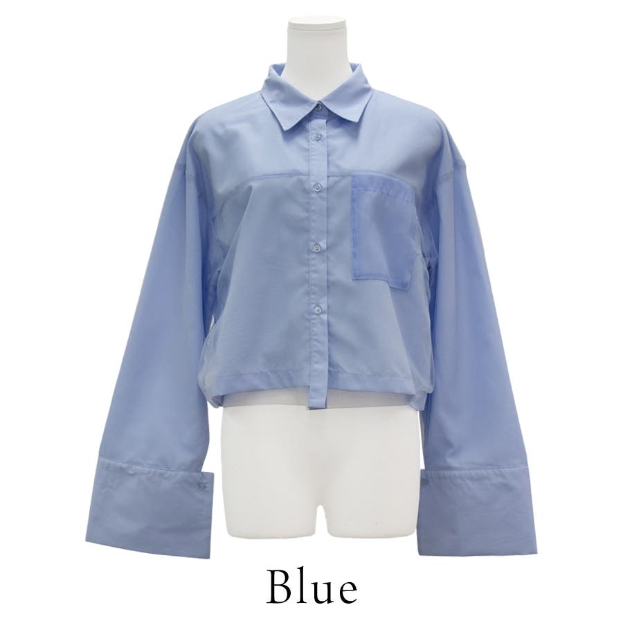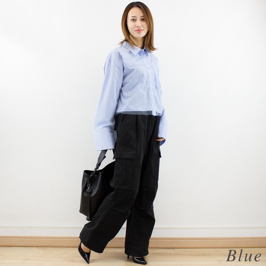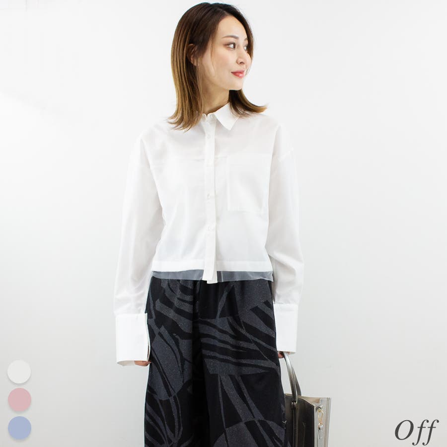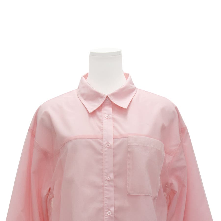 開襟シャツにチュールを合わせた今季らしいシャツ