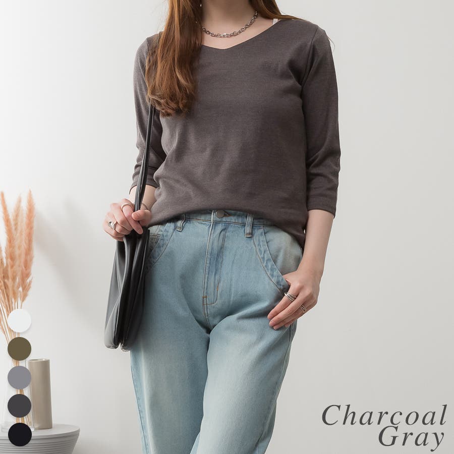春/夏/秋/着まわし/万能/デイリー/七分丈/Vネック/