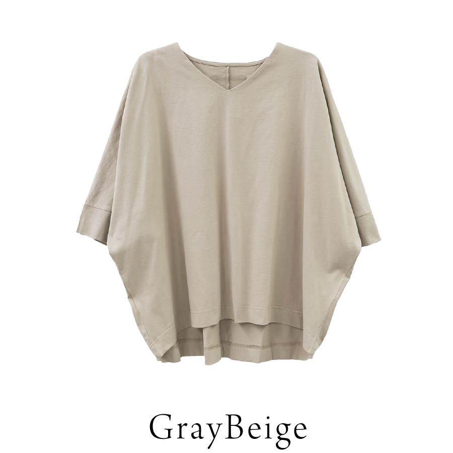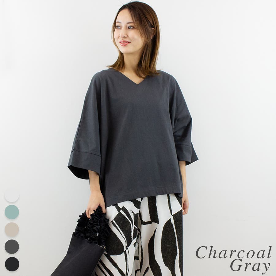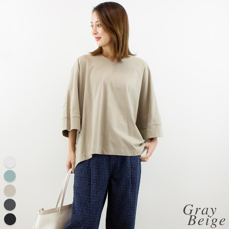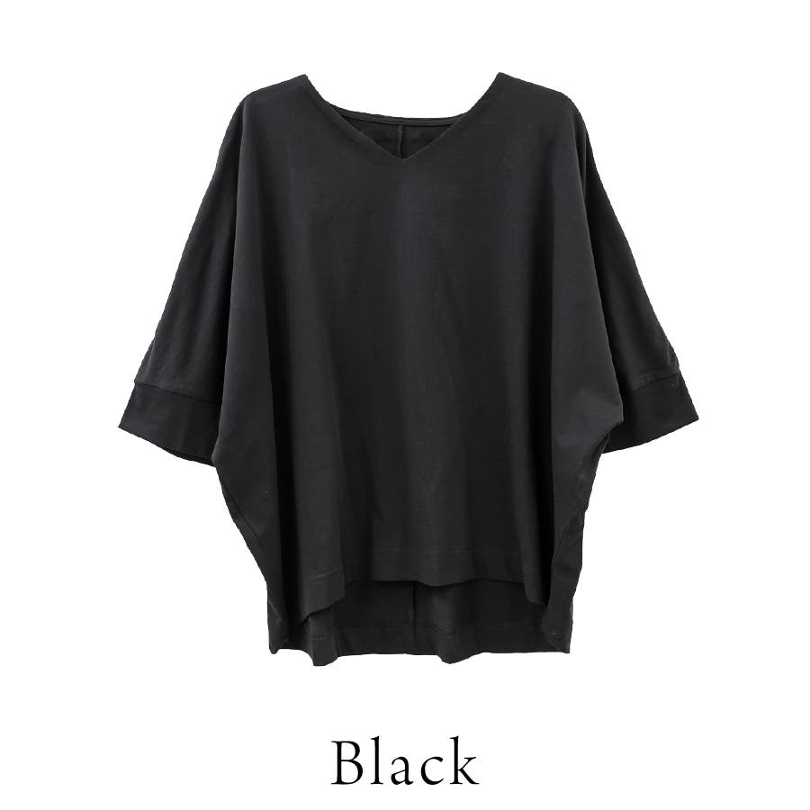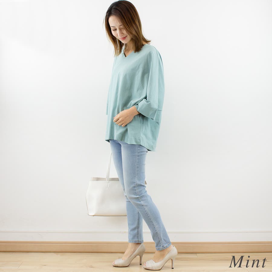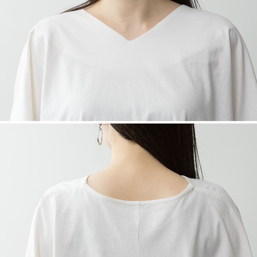 Vネック7分袖ドルマンTシャツ