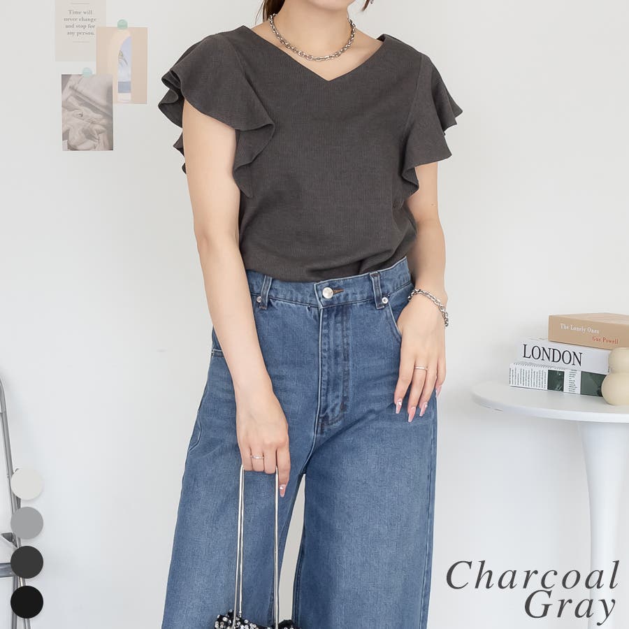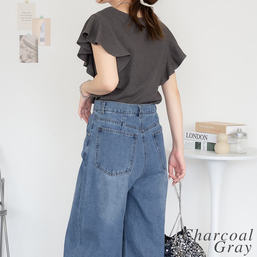 フレアスリーブがポイントのフレンチスリーブトップス。