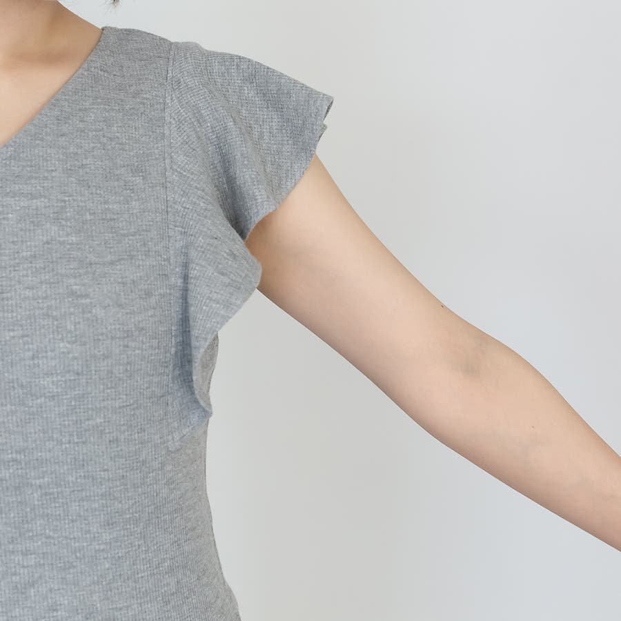 程よい袖丈がありますので、肩まわりをキレイにみせてくれます。