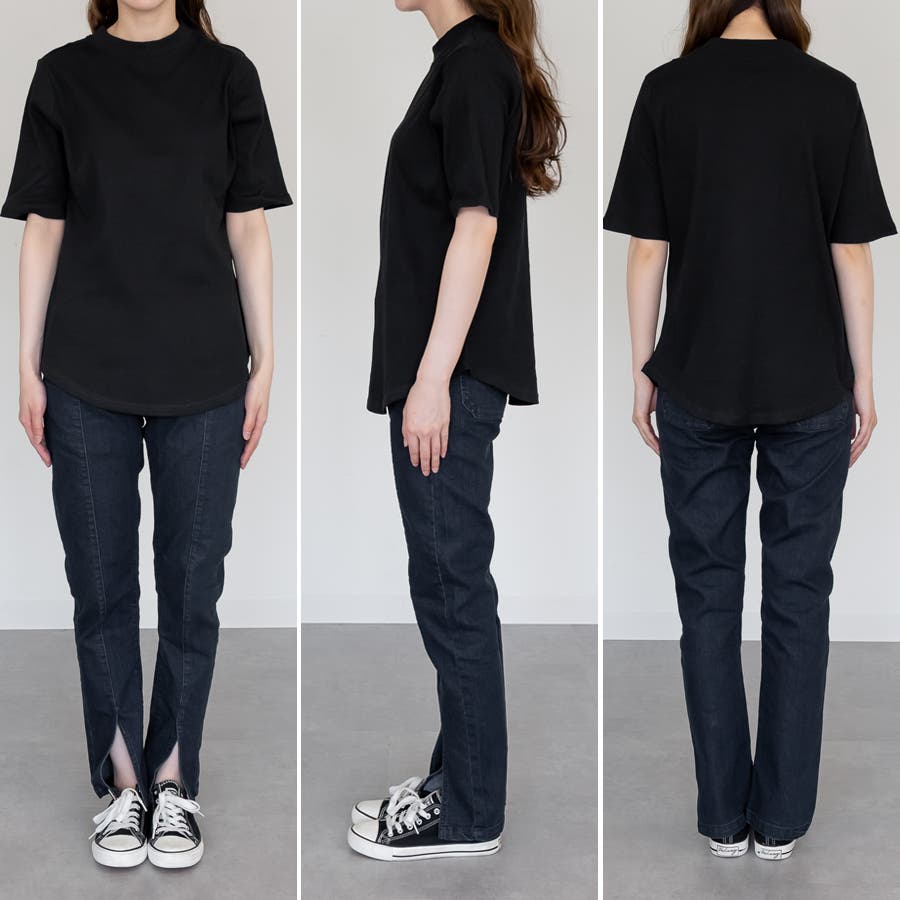 リブプチハイネック半袖Tシャツ