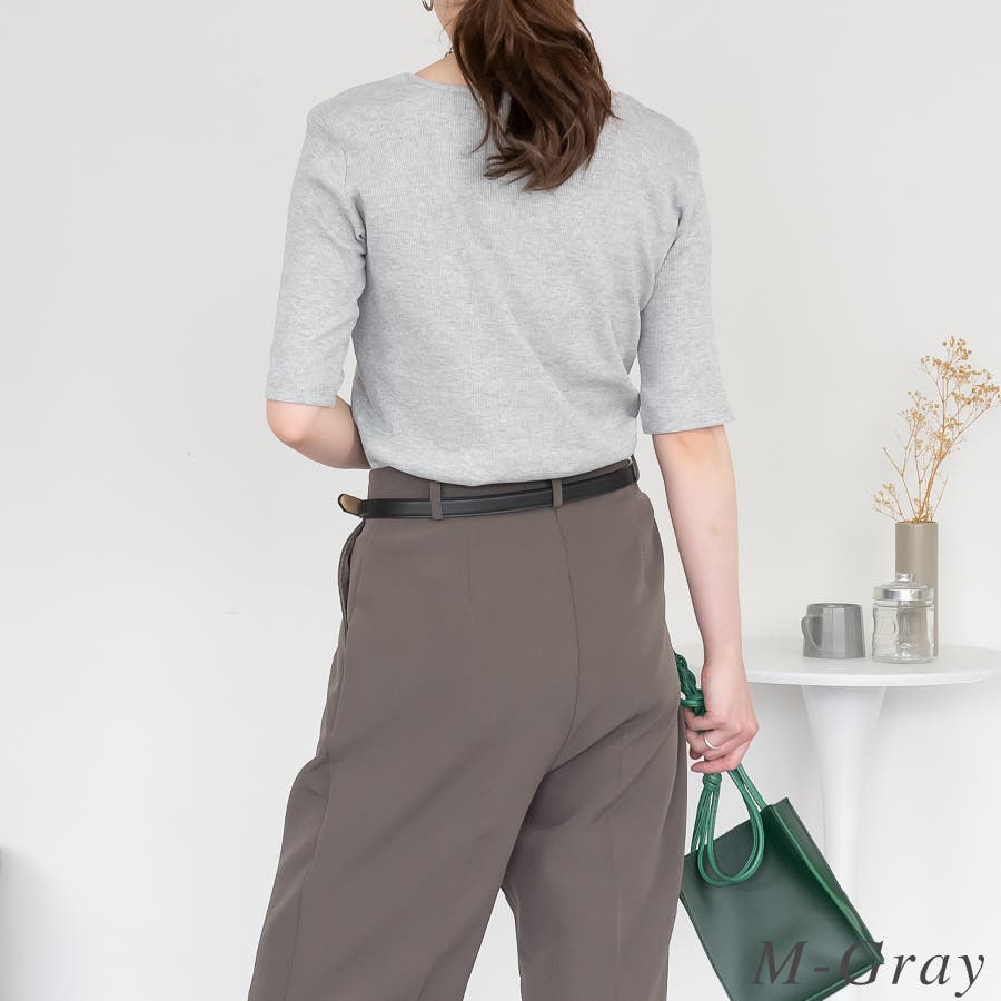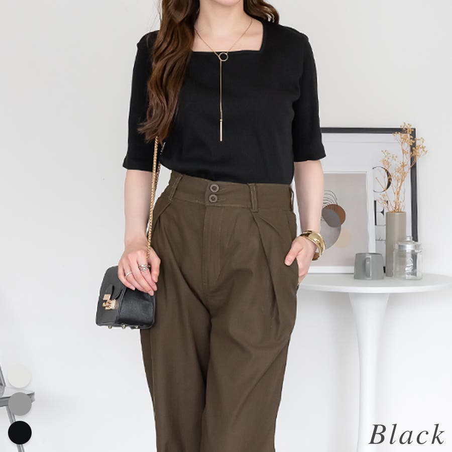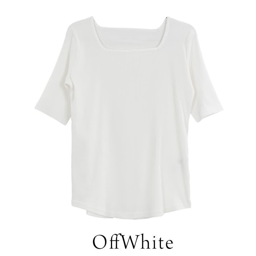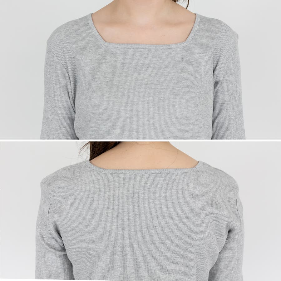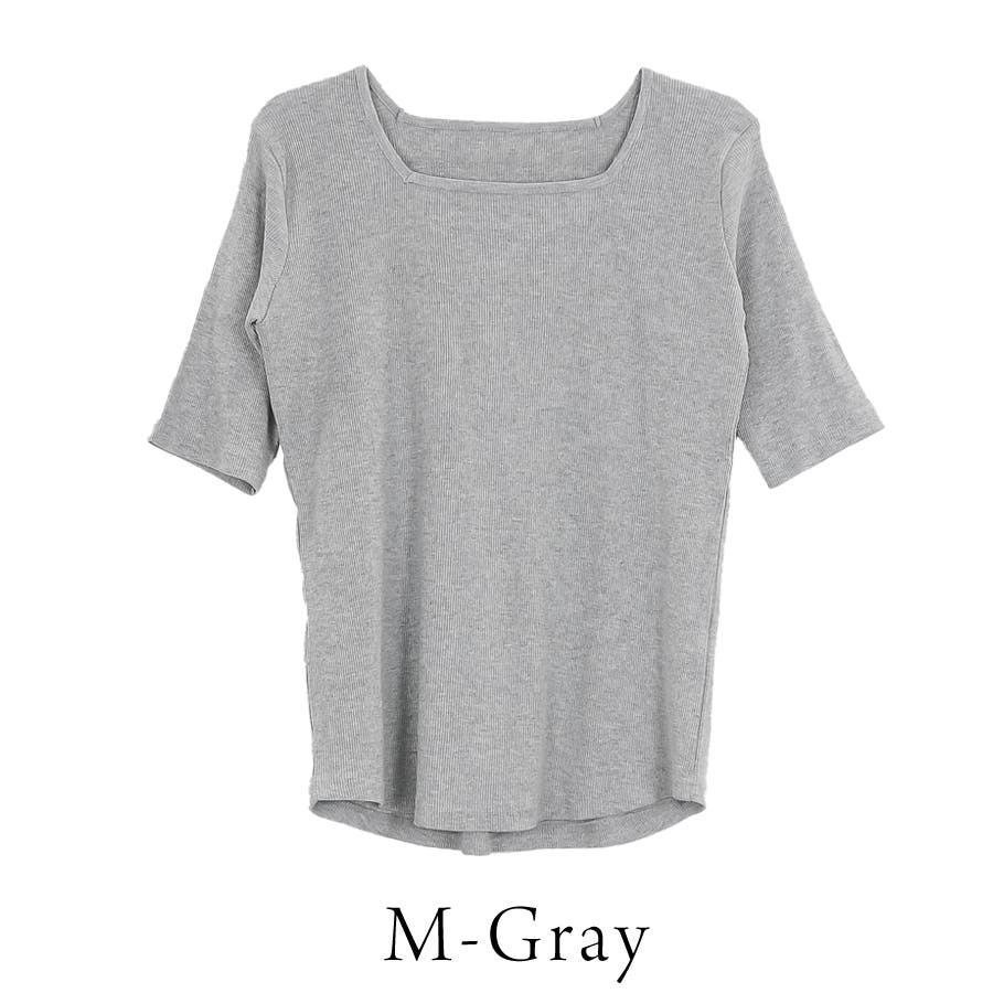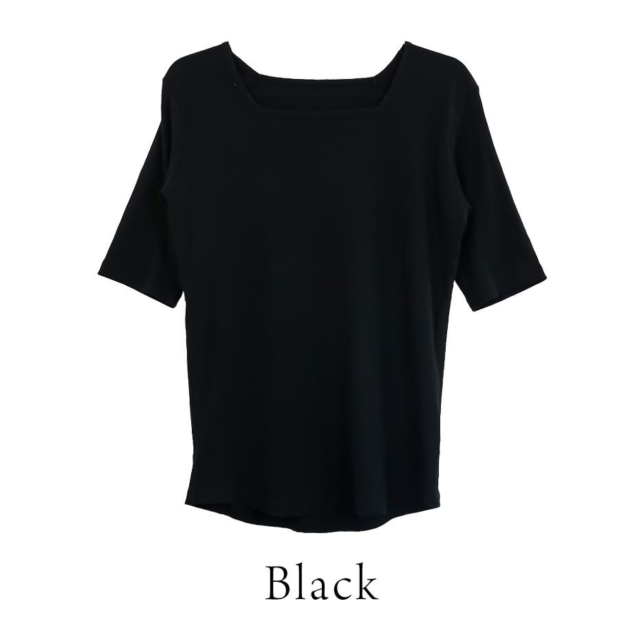 スクエアネック5分袖コットンリブTシャツ