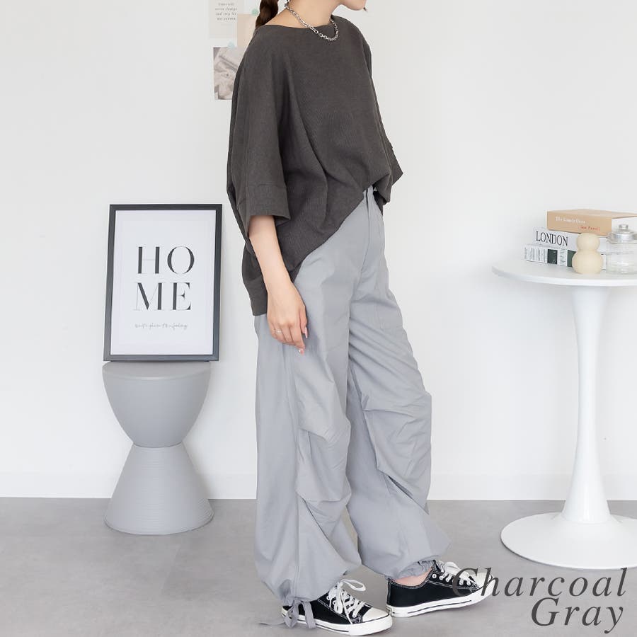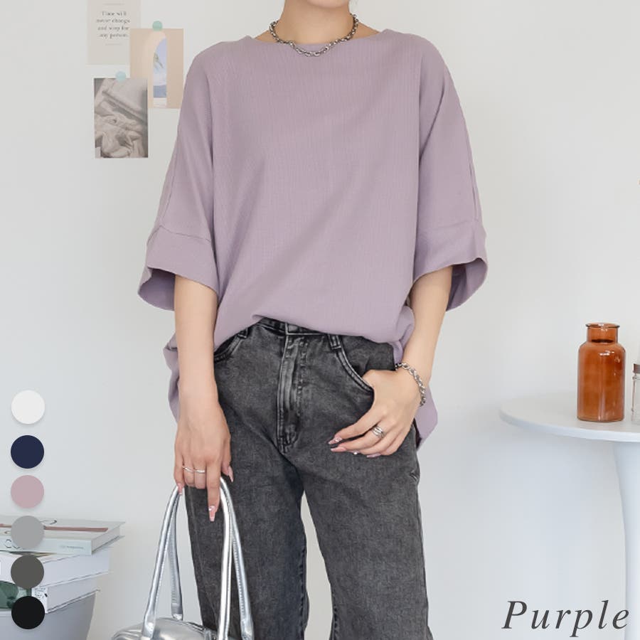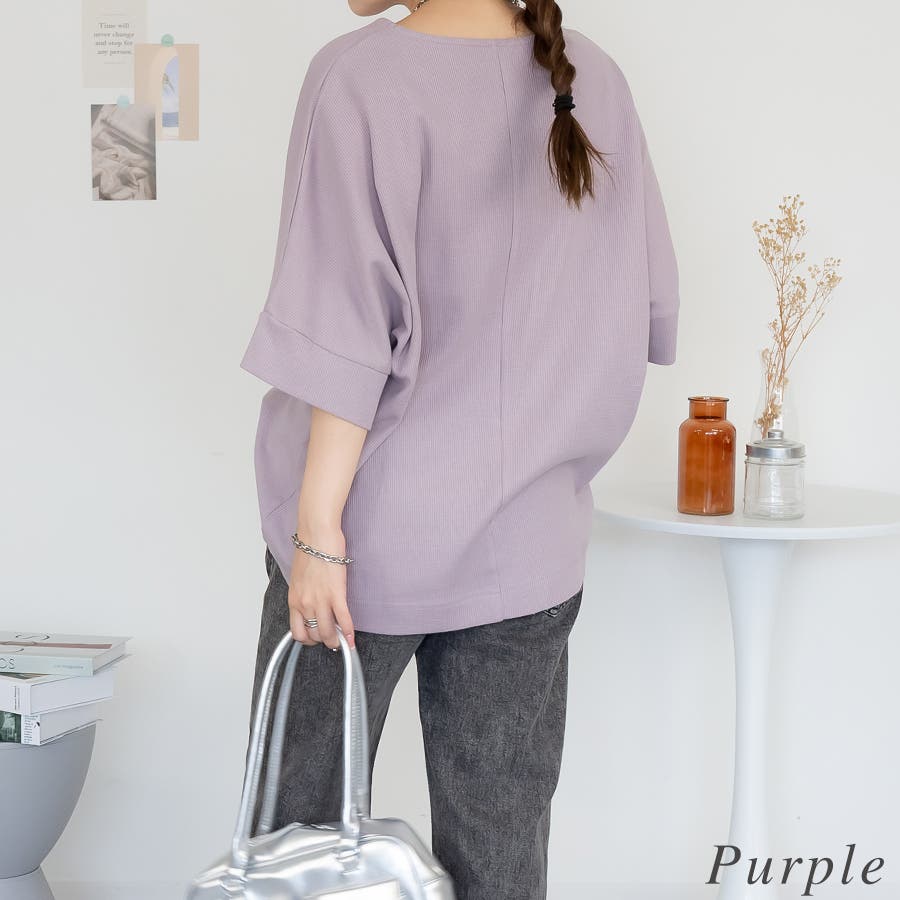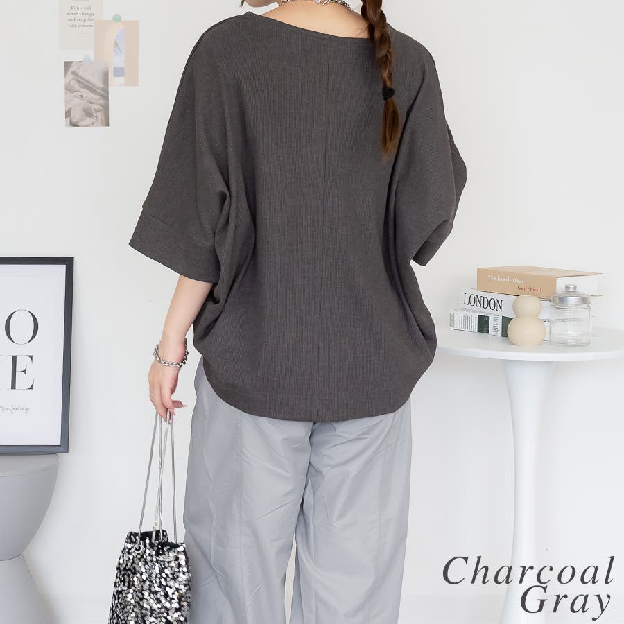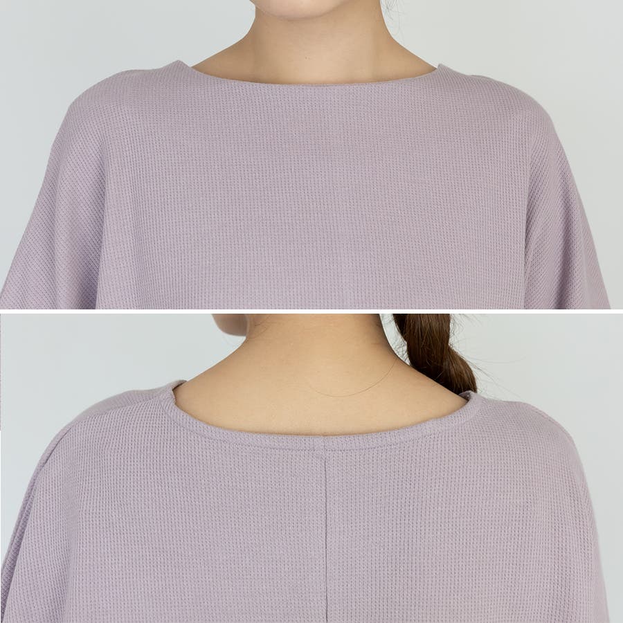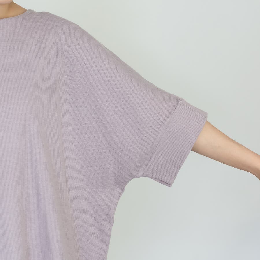 ワッフル素材を使用したドルマンデザインのトップス。