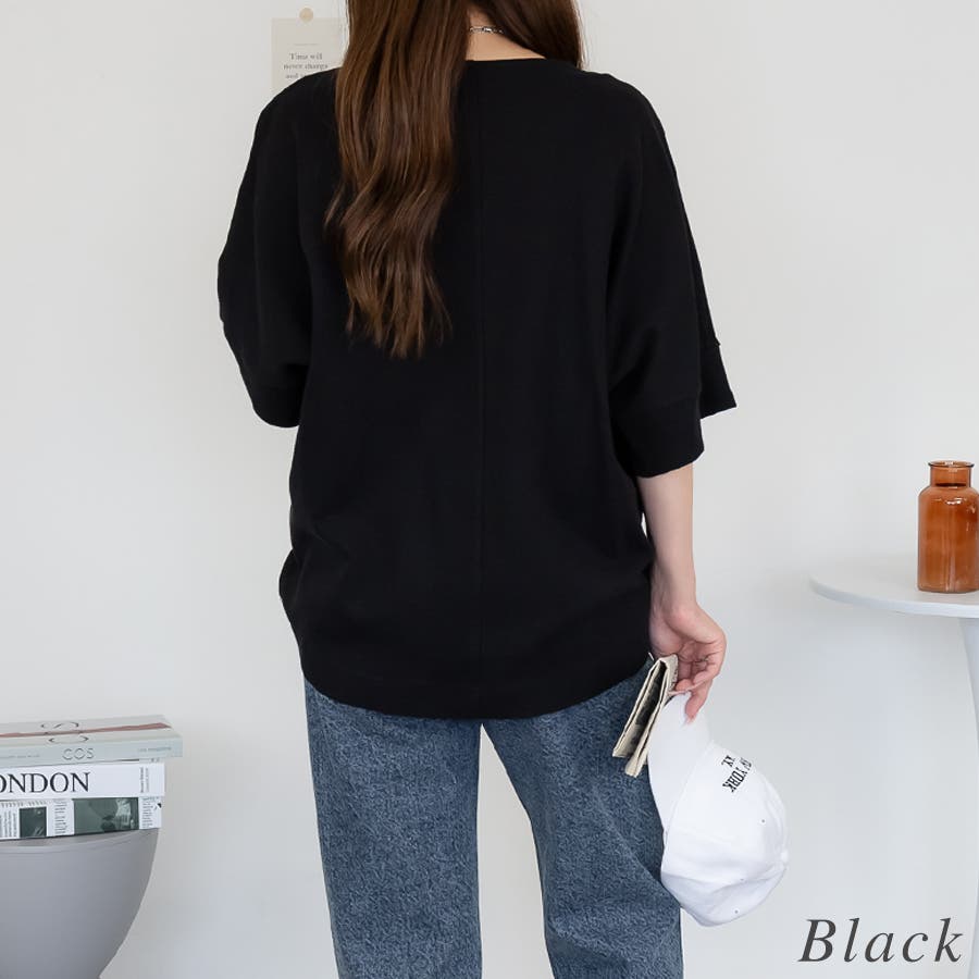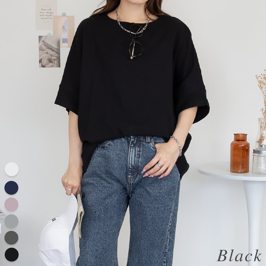 コットンワッフル7分袖ドルマンTシャツ