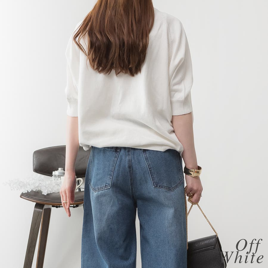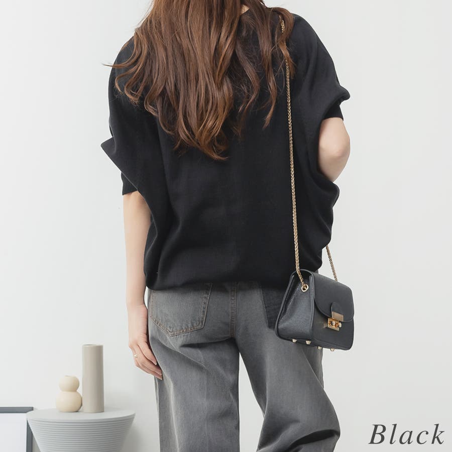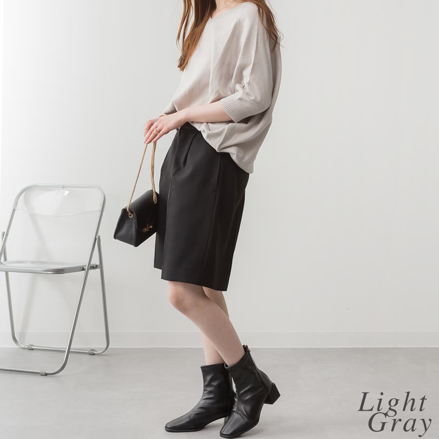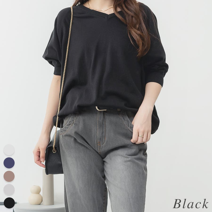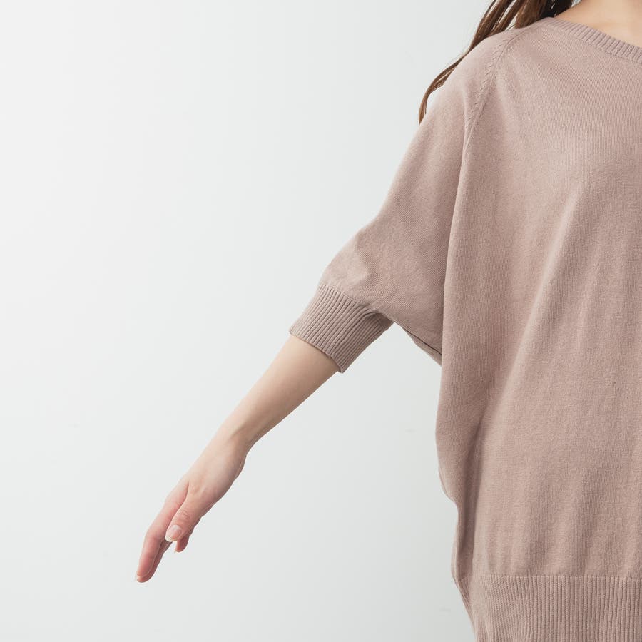 ドルマンシルエットの五分袖ニット