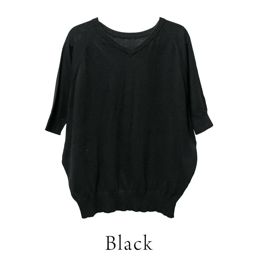 ドルマンシルエット5分袖ニット