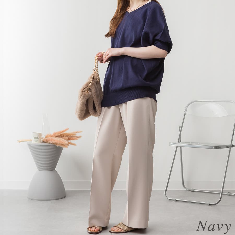 春/夏/秋/着まわし/万能/デイリー/5分丈/Vネック/