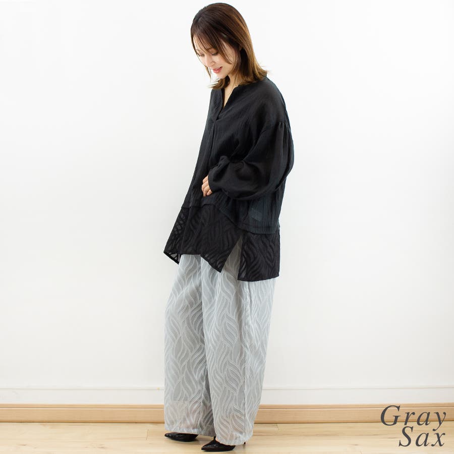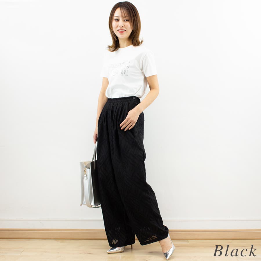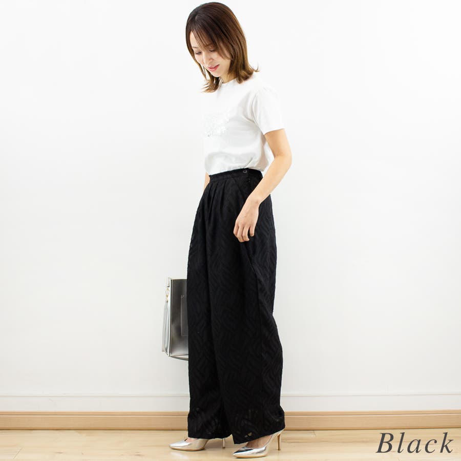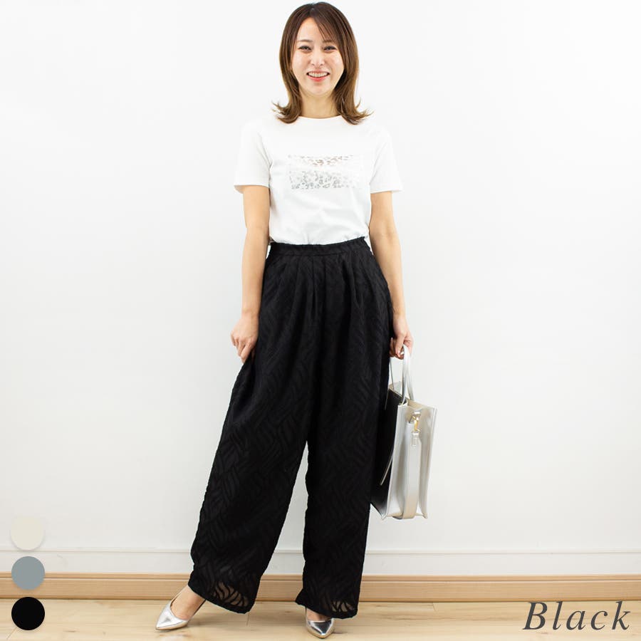 通学/通勤/パンツ/ハイウエスト/ジャガード/シアー/