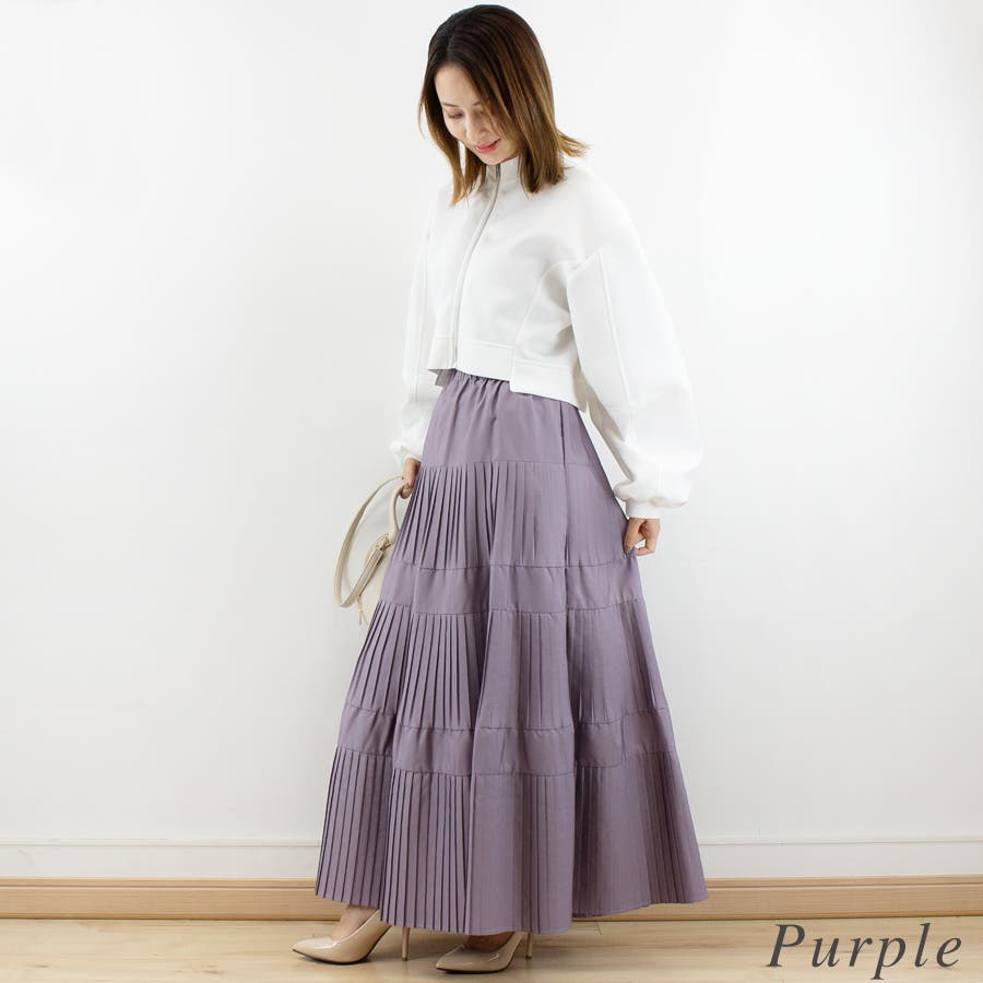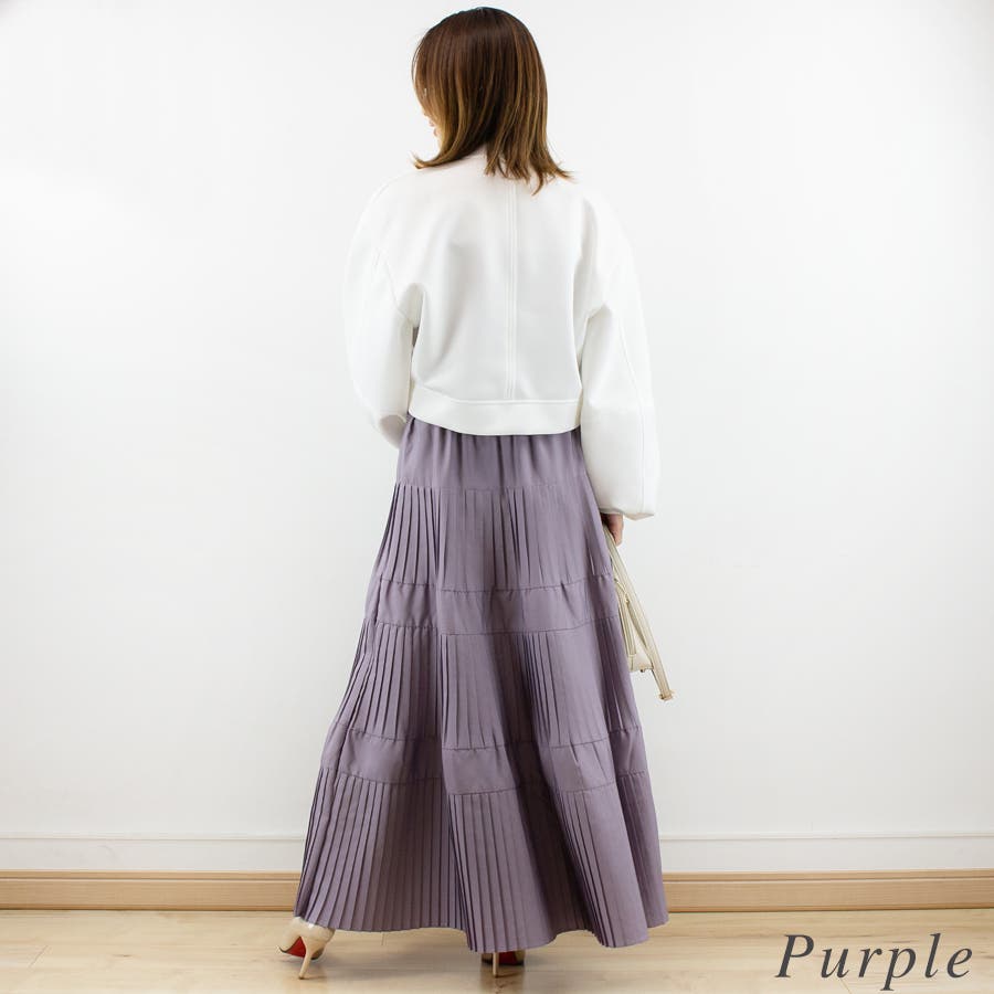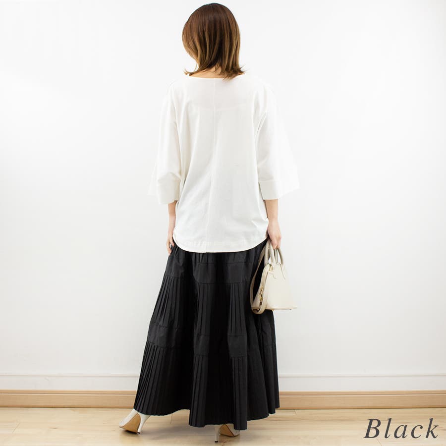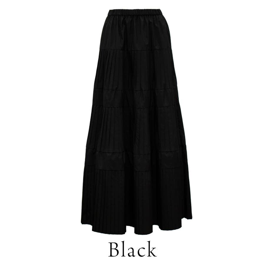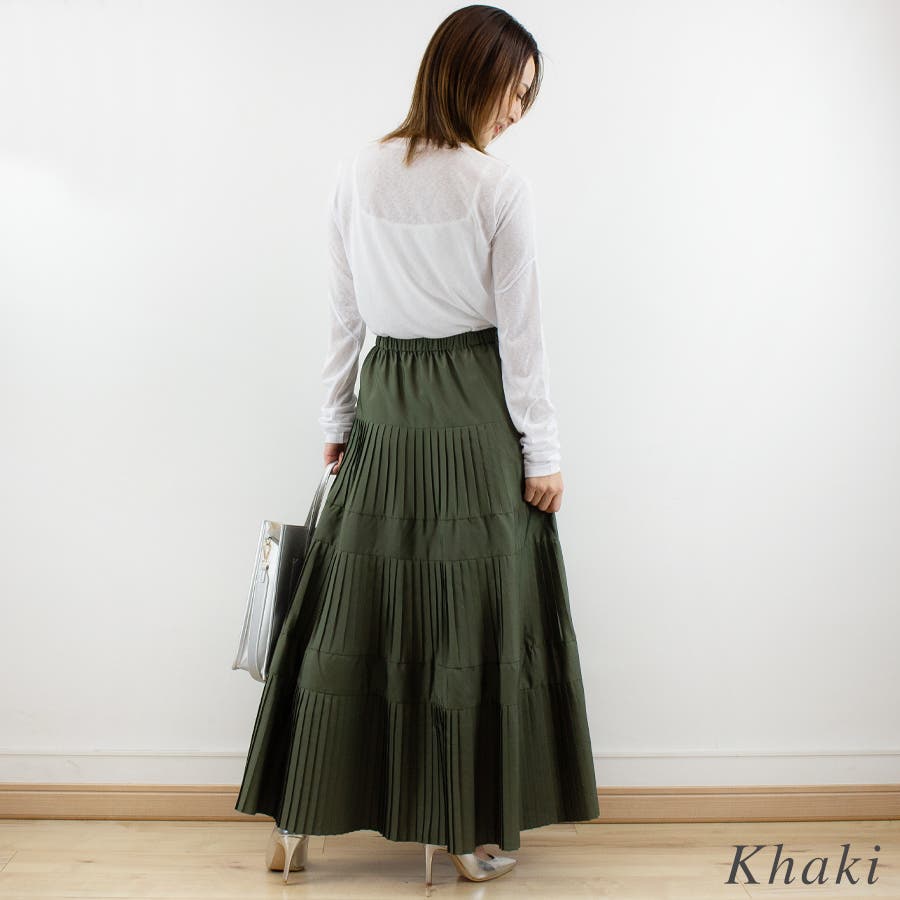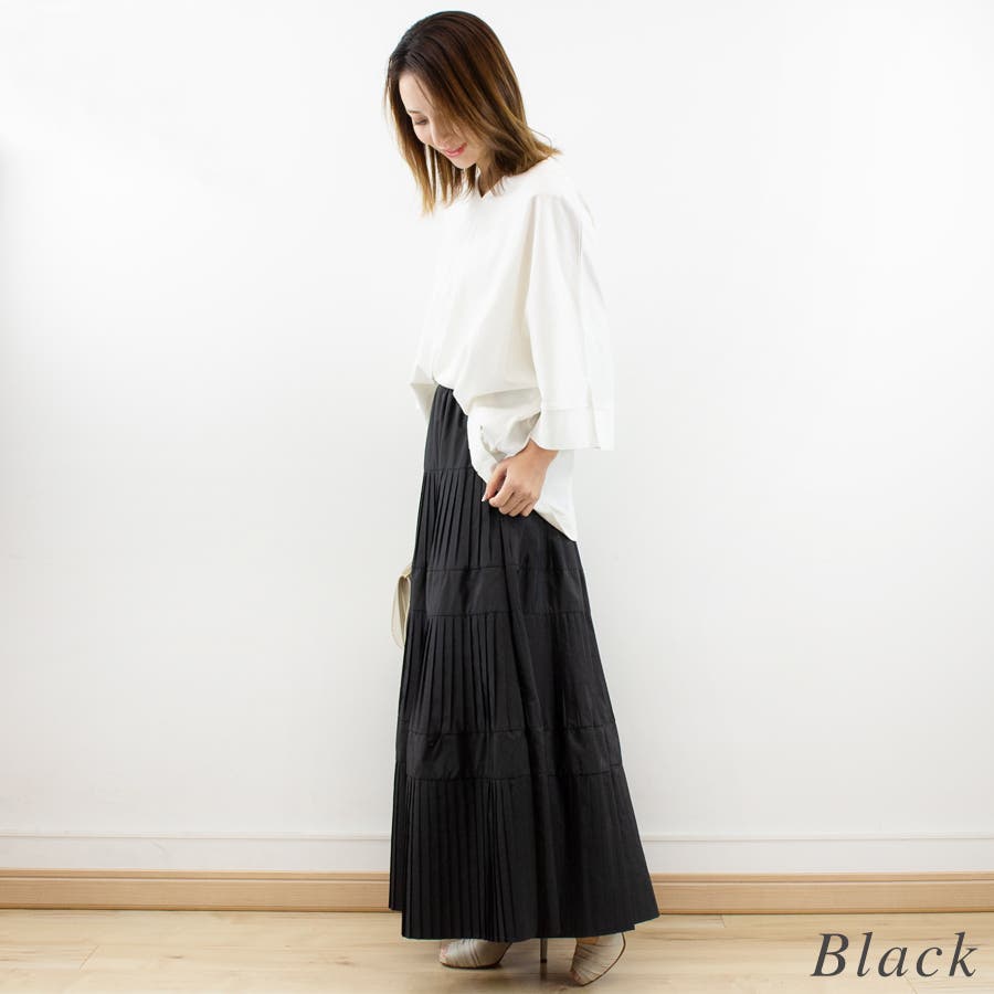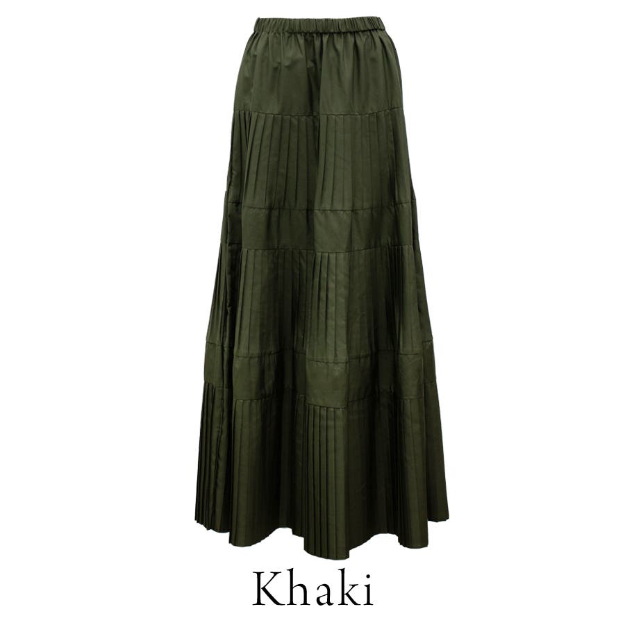 少しハリ感のある素材でしっかりタック、プリーツが入ったスカート。