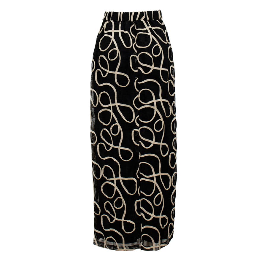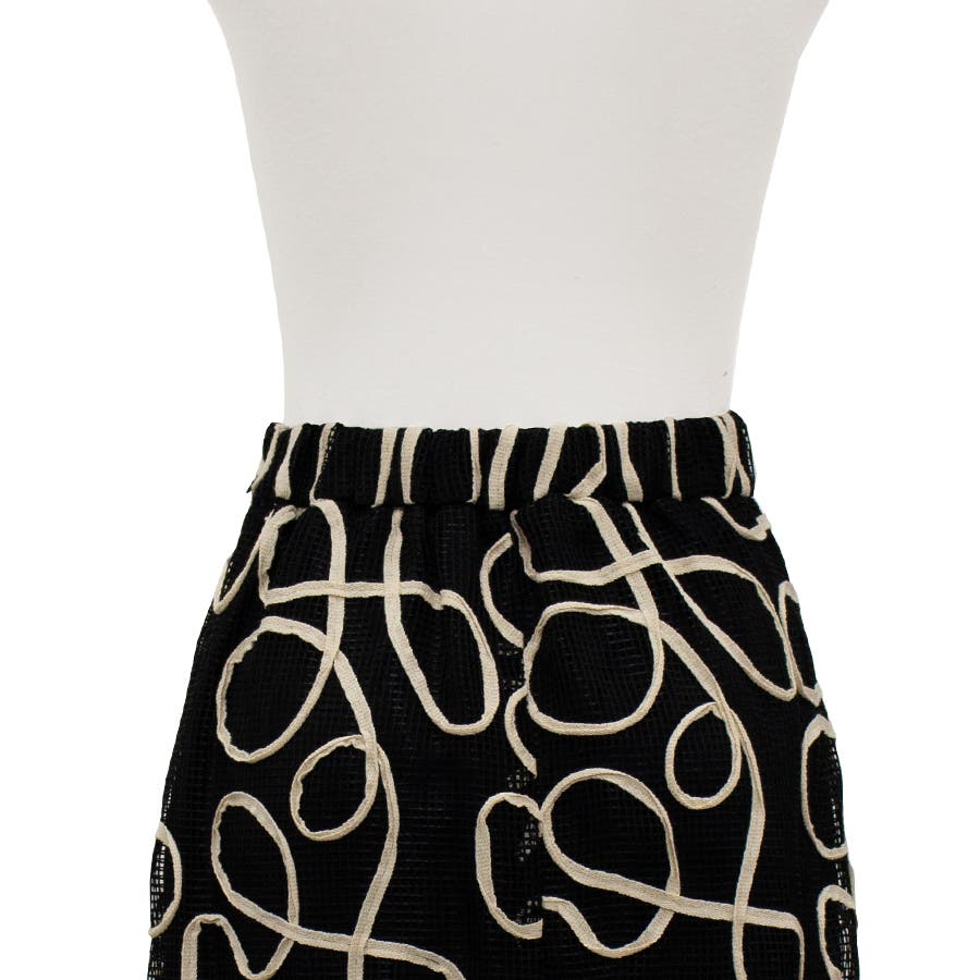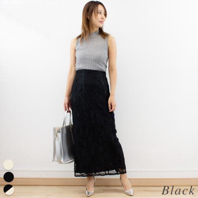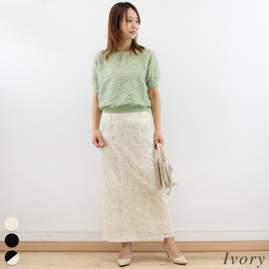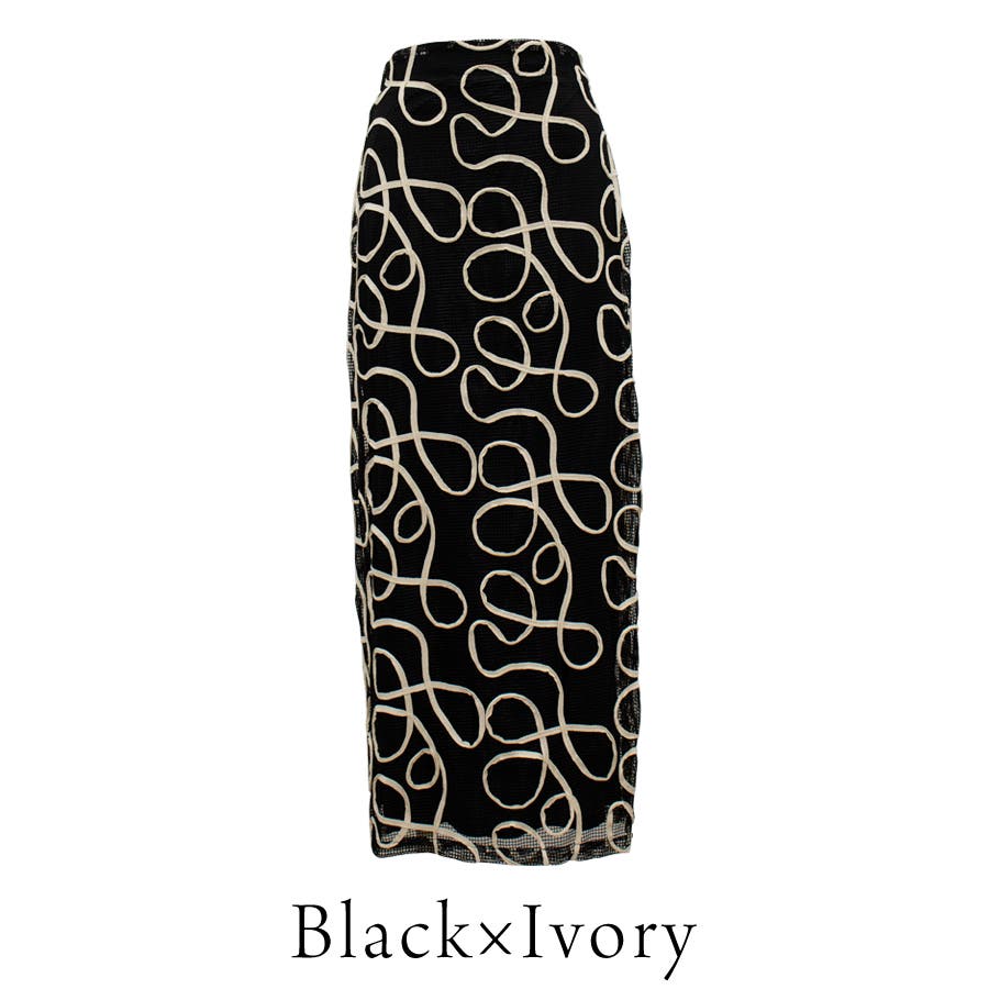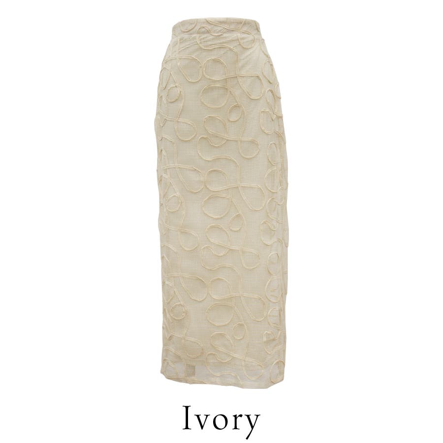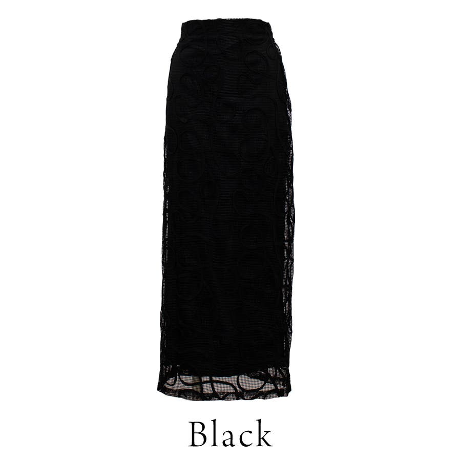 メッシュb素材にコード刺繍をあしらったトレンド感たっぷりのタイトスカート。