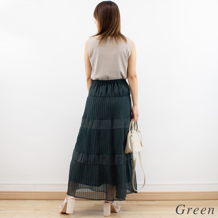 シアープリーツメッシュティアードスカート