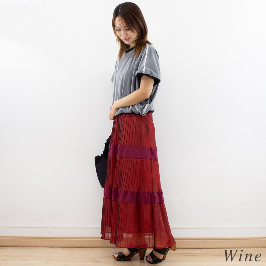 異素材を合わせたシアー感のあるティアードスカート。