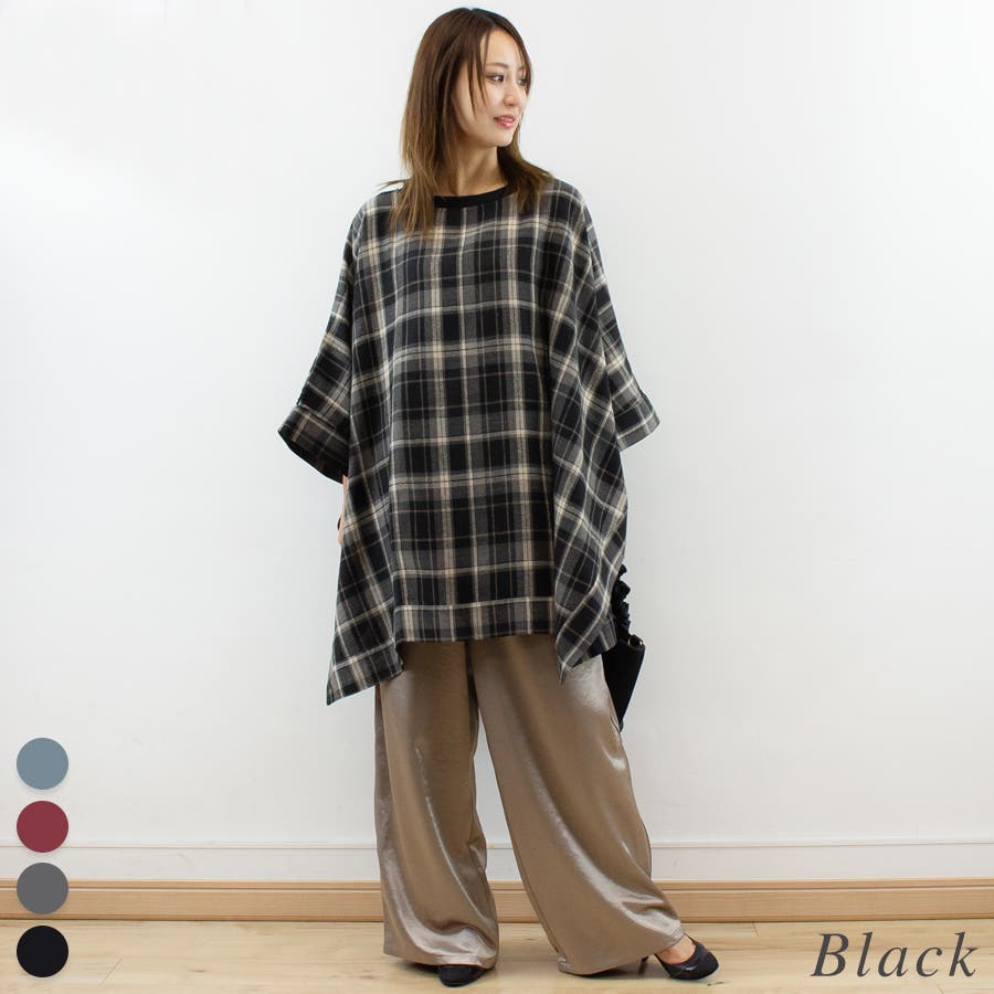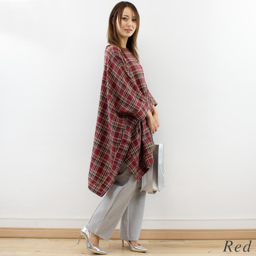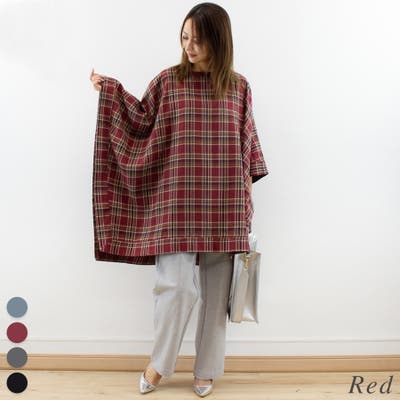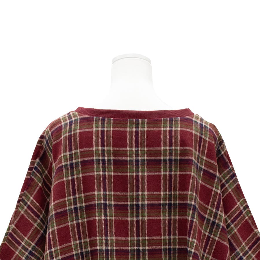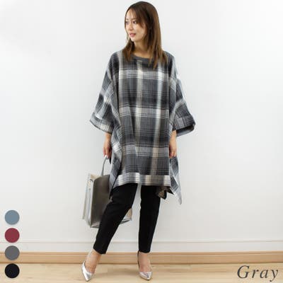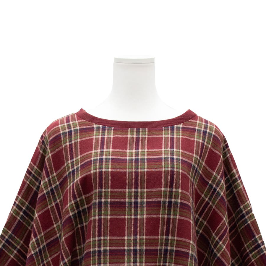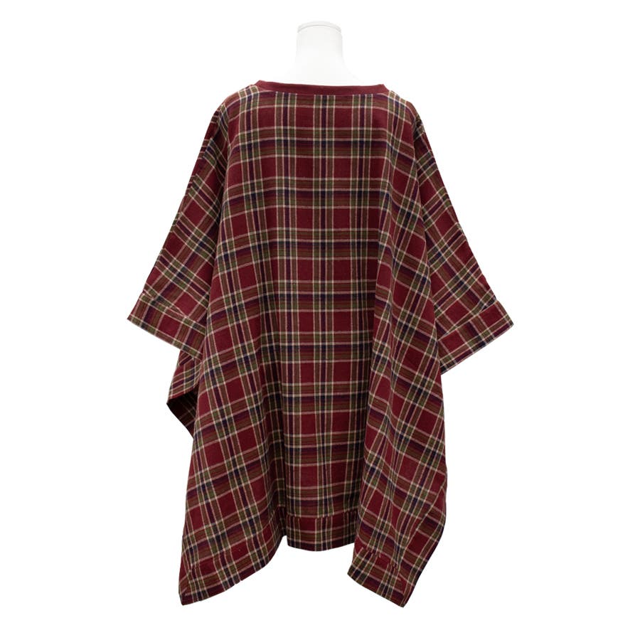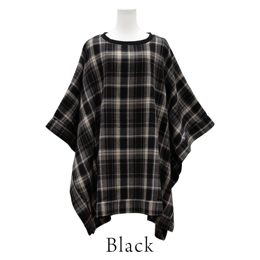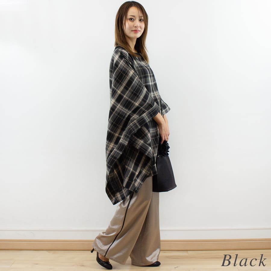 チェック柄にポンチョデザインがかわいいトップス。