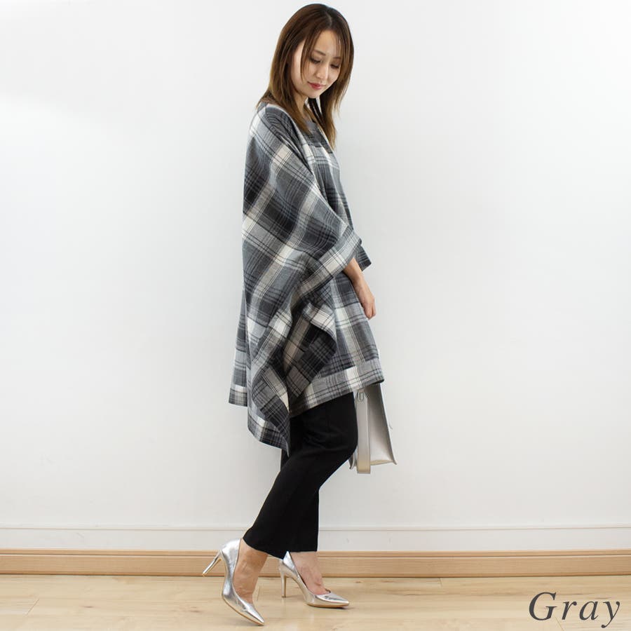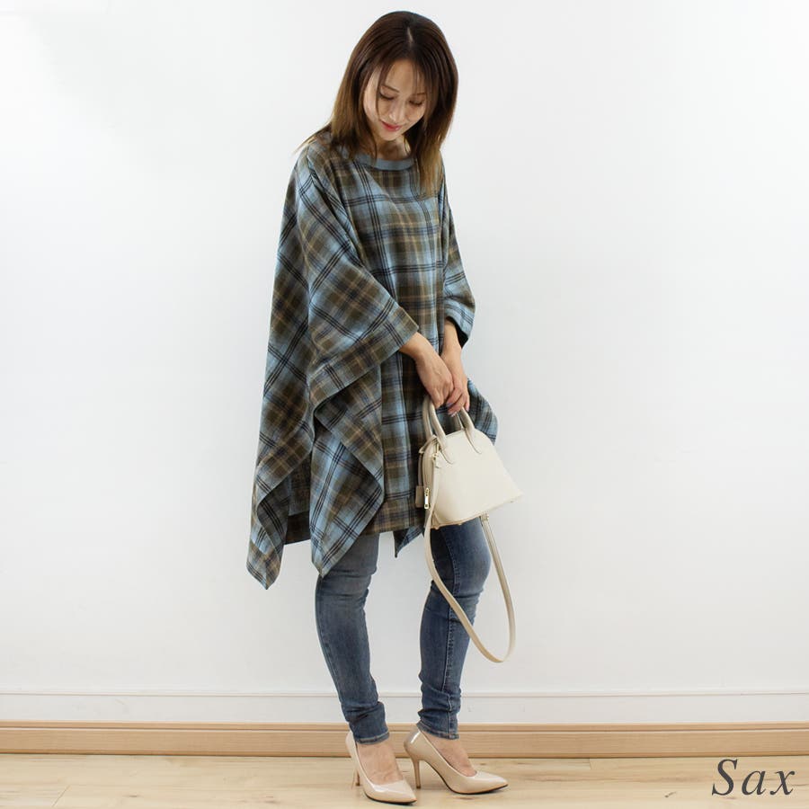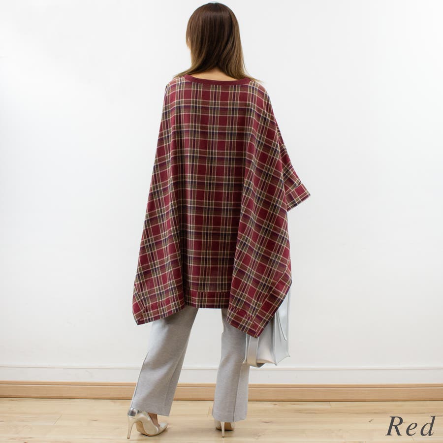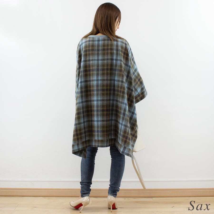 春/秋/冬/着まわし/万能/デイリー/裏毛/ポンチョ/チェック/