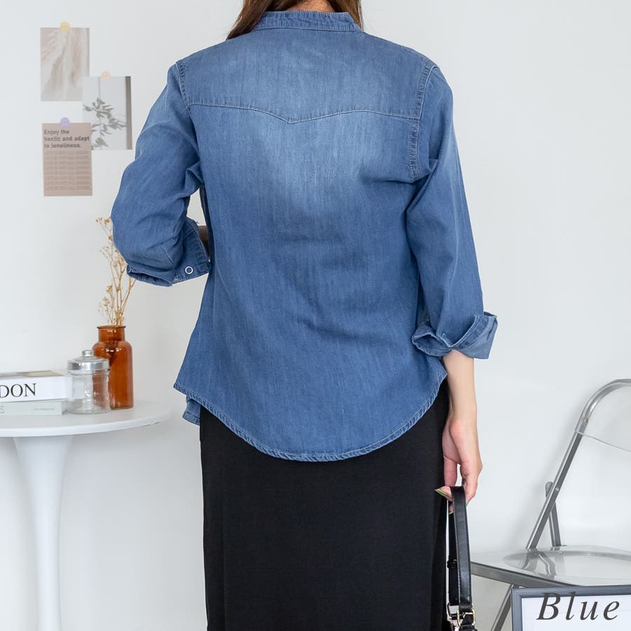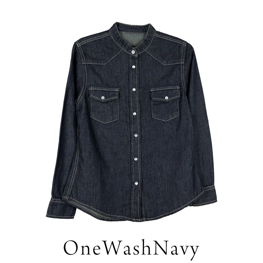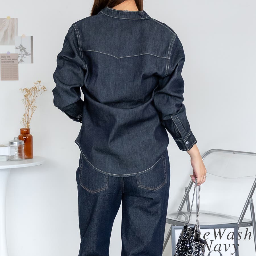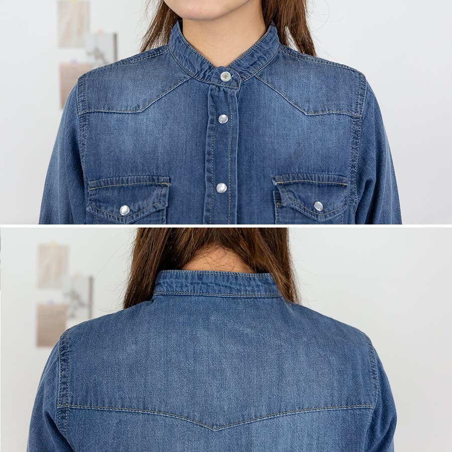 ノーカラーウェスタンデニムシャツ