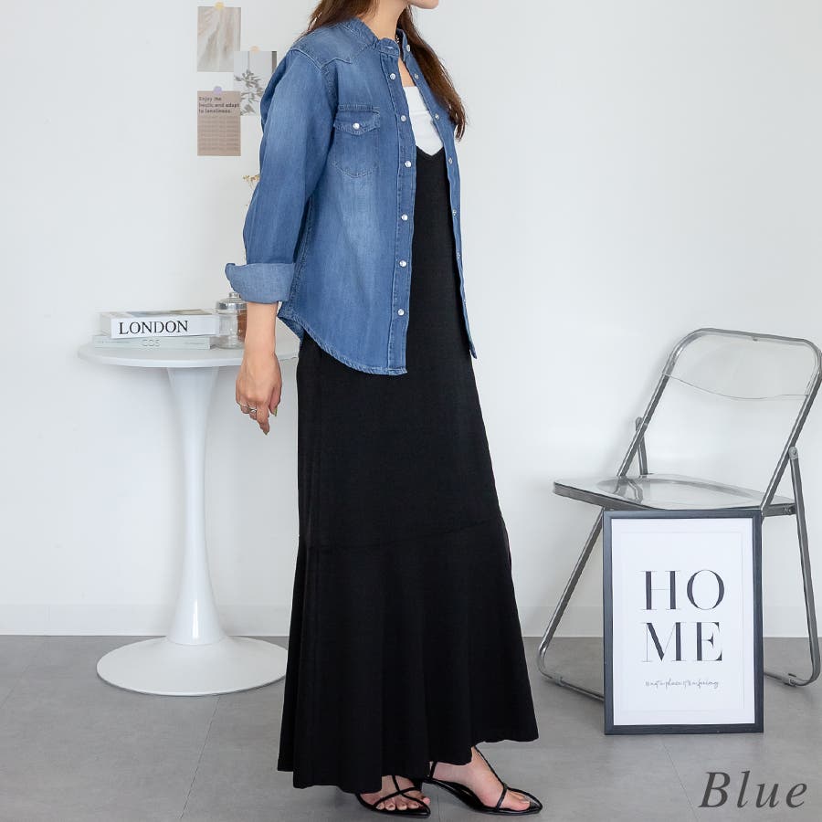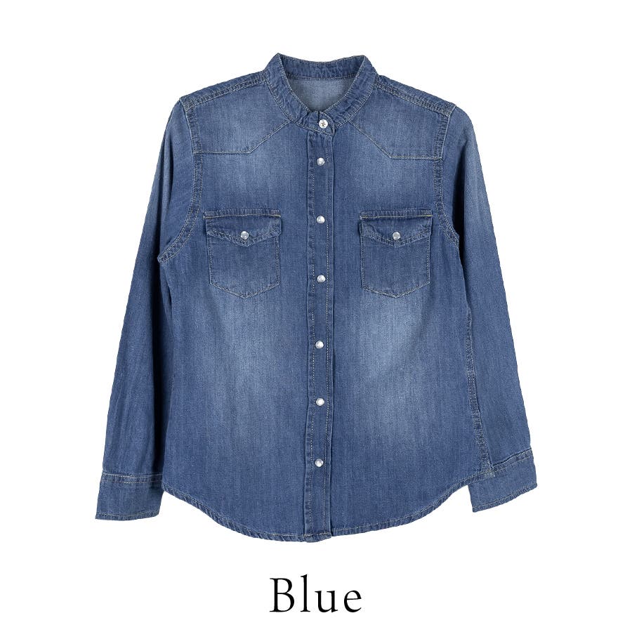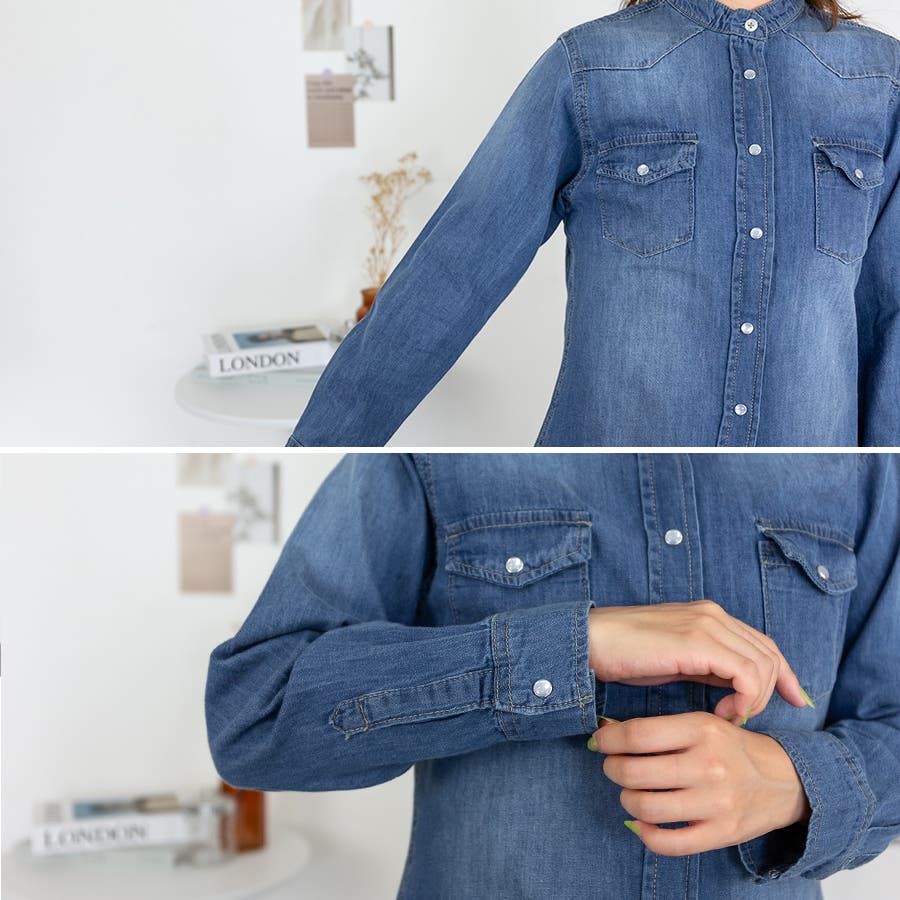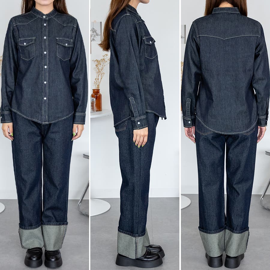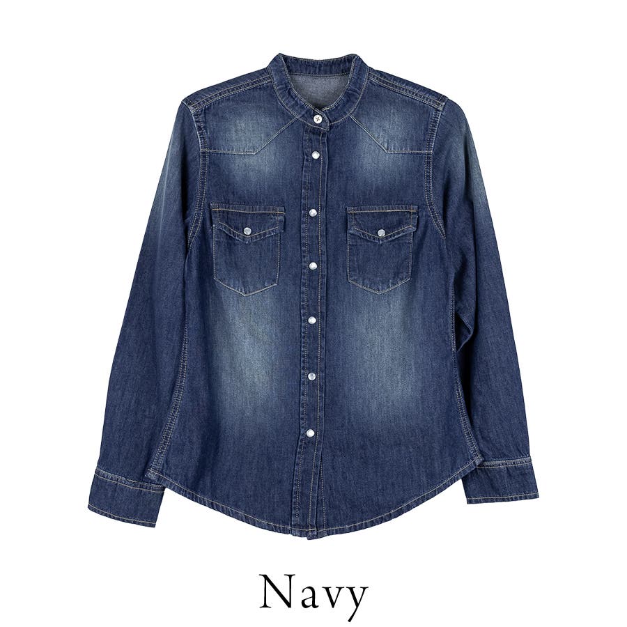 ノーカラーウェスタンデニムシャツ