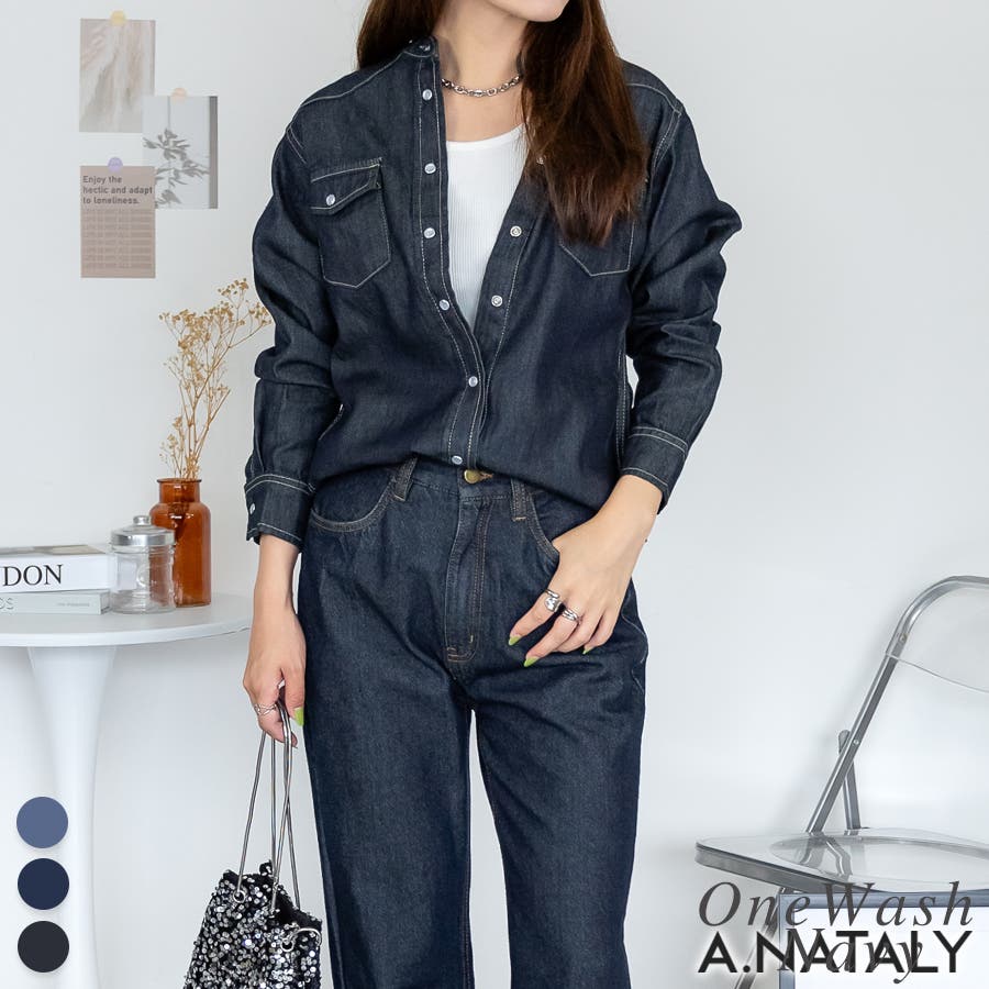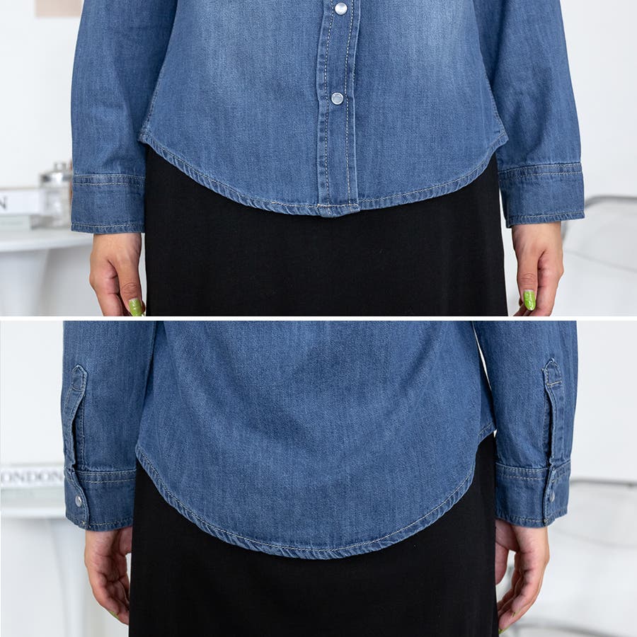 春/秋/冬/着まわし/万能/デイリー/デニムシャツ/トップス/長袖/