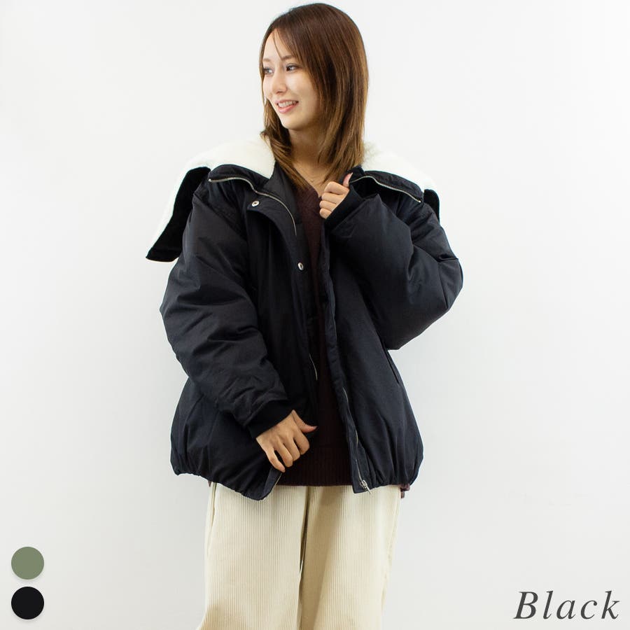 ファイバーダウンフードボアバルーンミドルブルゾン