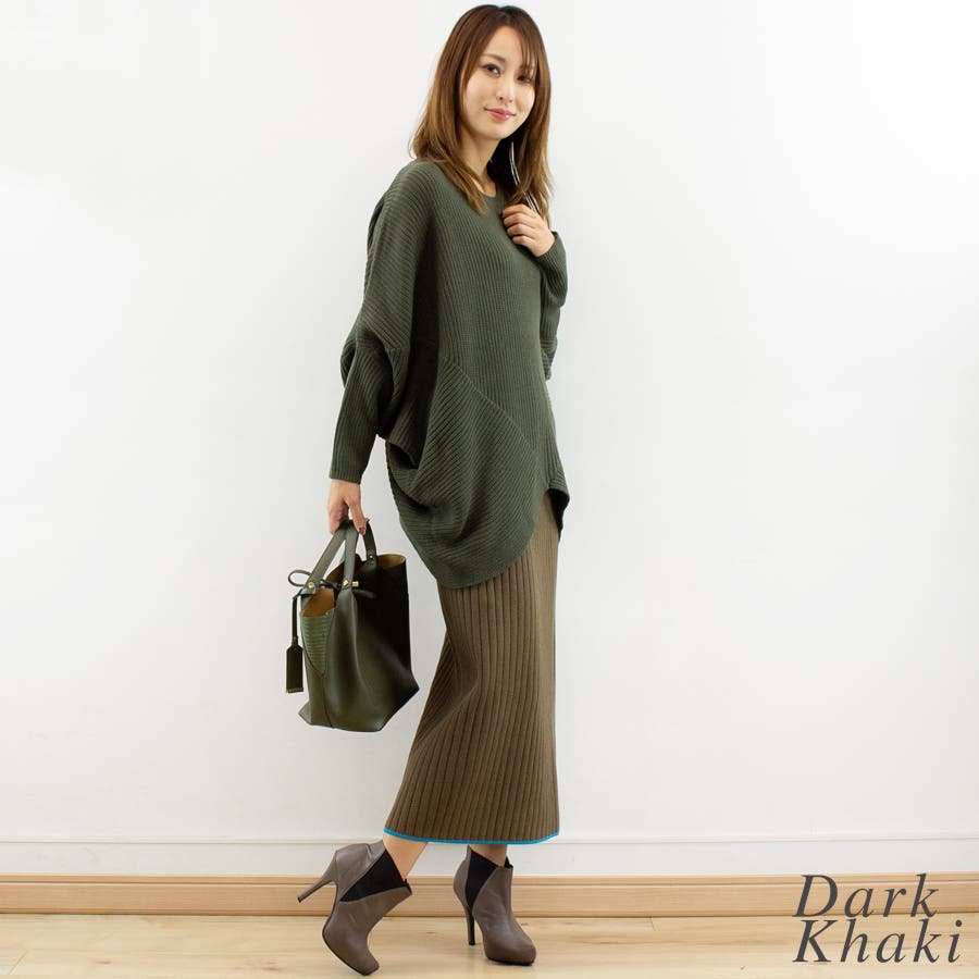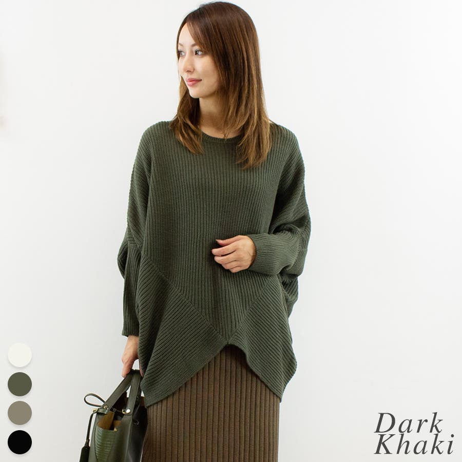 ルーズな落ち感が大人女性にぴったりなドレープドルマンニット。