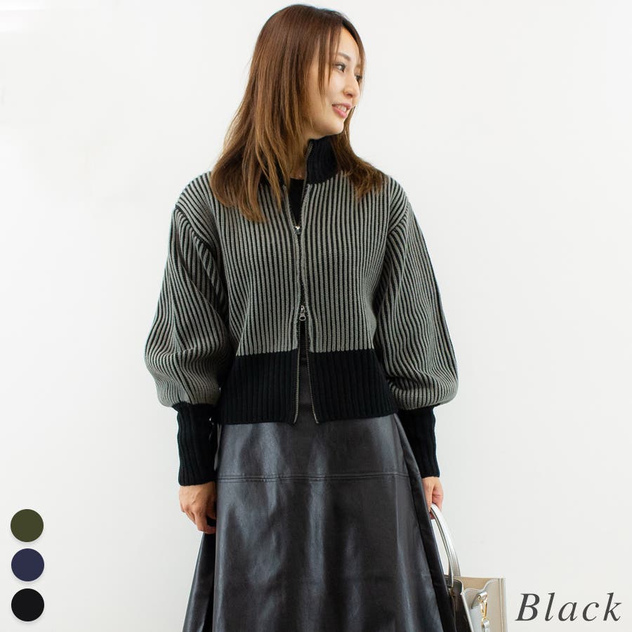 トップスとしてもジャケットとしても使えるバイカラーニット。