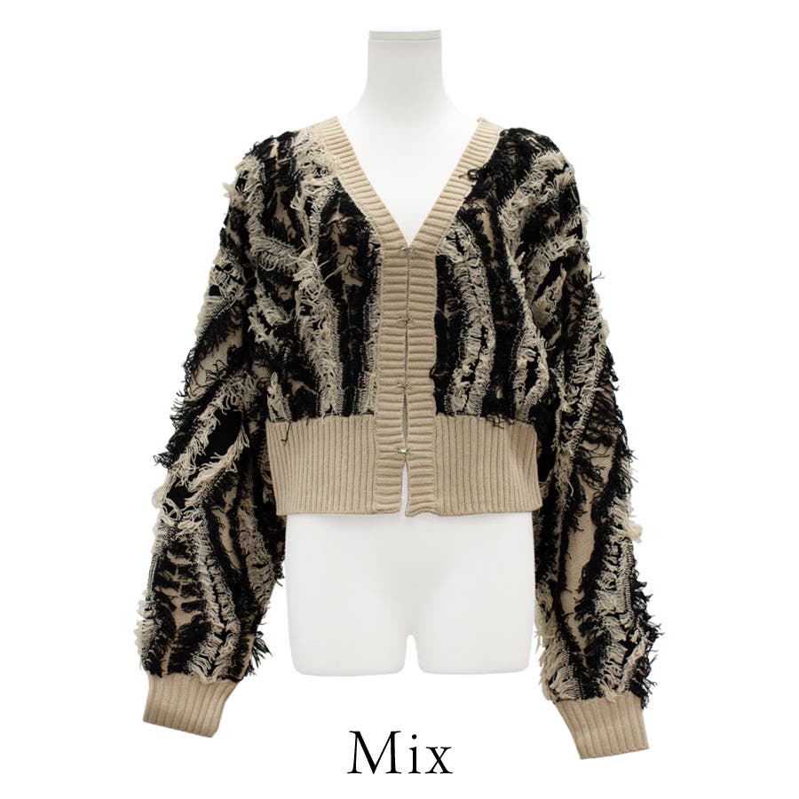 MIXフリンジニットショートカーディガン
