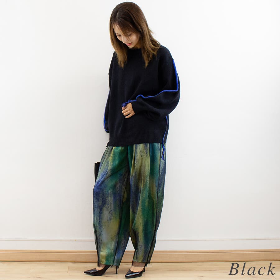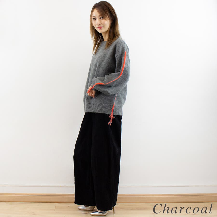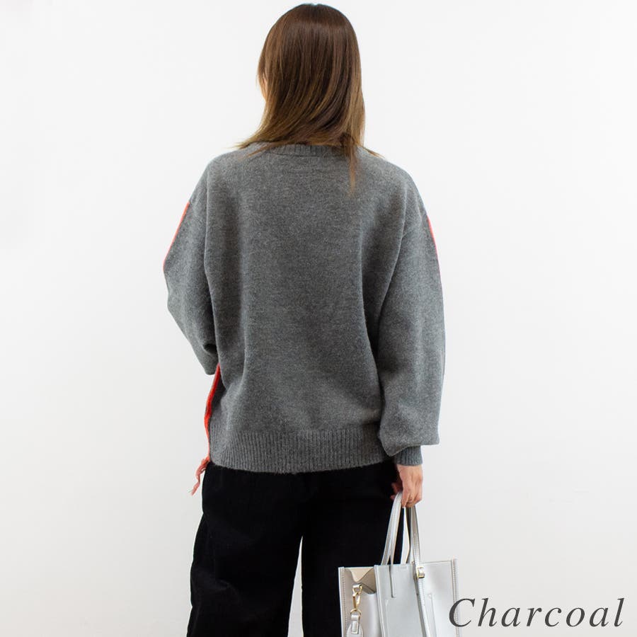 アルパカタッチ脇配色ラインプルオーバー